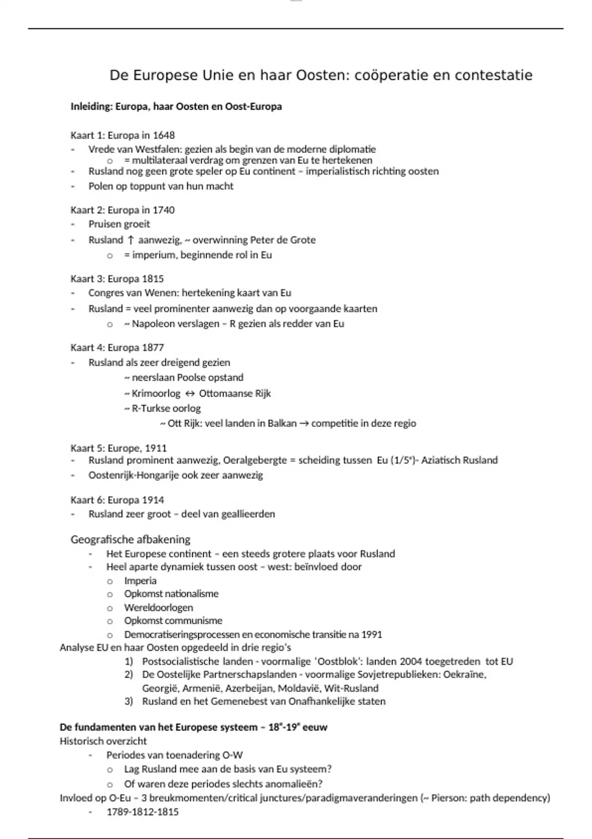 - Rusland nog geen grote speler op Eu continent – imperialistisch richting oosten