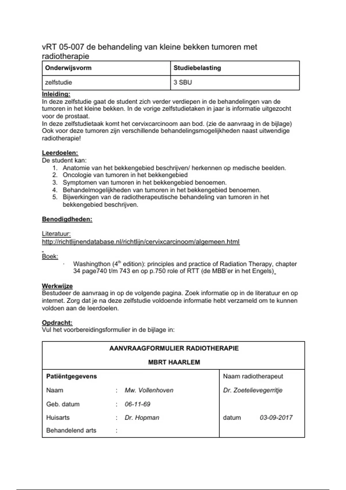 vRT 05-007 de behandeling van kleine bekken tumoren met