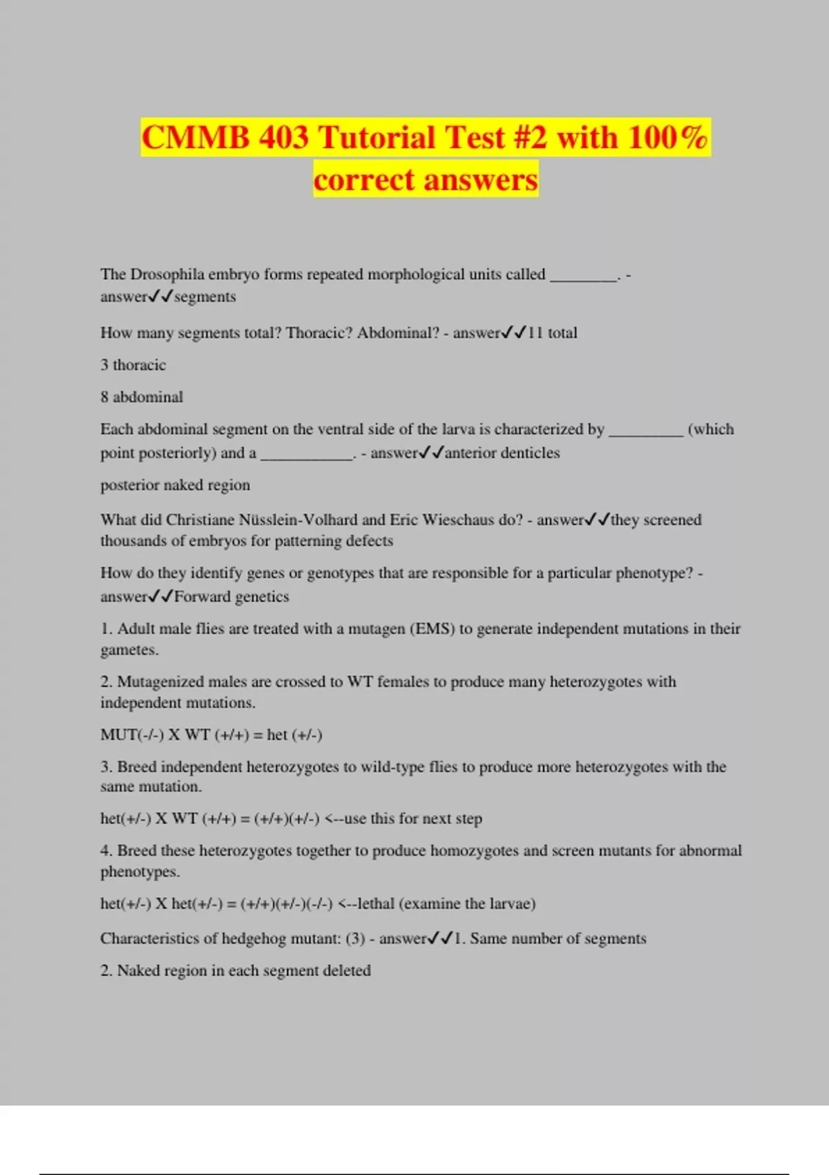 CMMB 403 Tutorial Test #2 with 100% correct answers