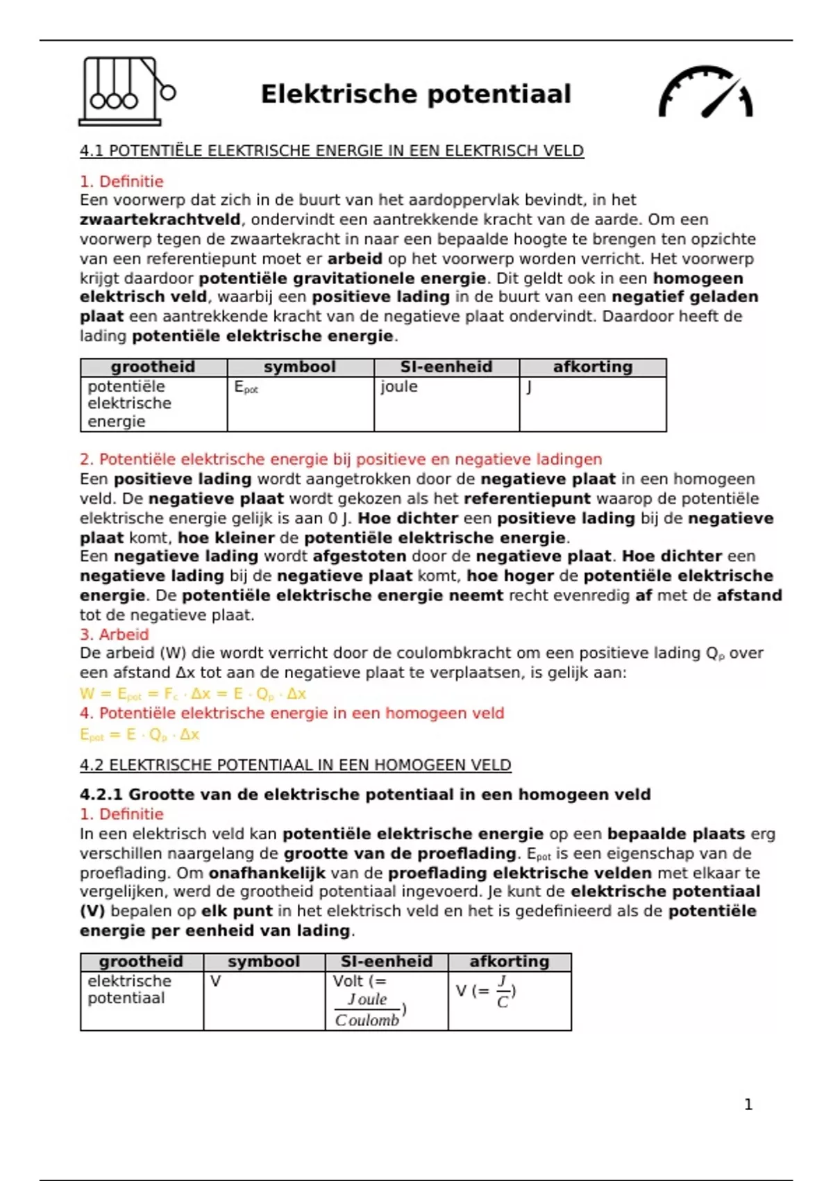 Samenvatting - Fysica '4. Elektrische potentiaal' GO! Onderwijs