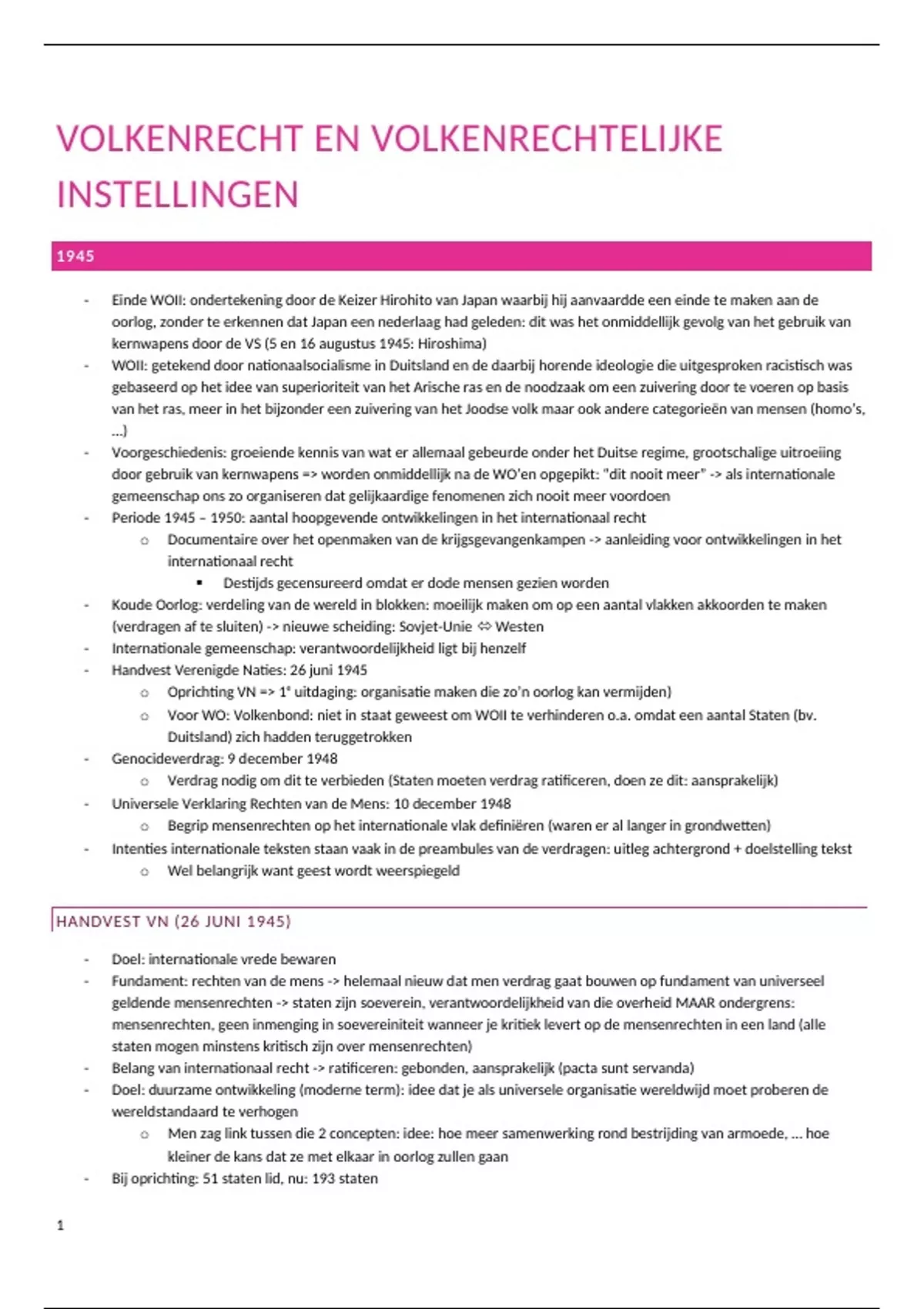 - Handvest Verenigde Naties: 26 juni 1945
