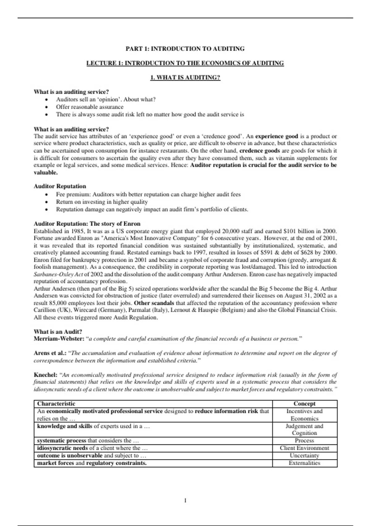 LECTURE 1: INTRODUCTION TO THE ECONOMICS OF AUDITING