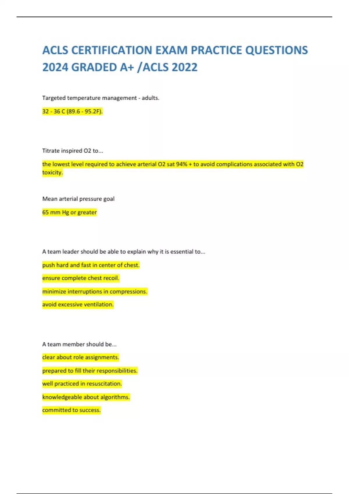 ACLS CERTIFICATION EXAM PRACTICE QUESTIONS 2024 GRADED A+ /ACLS 2022