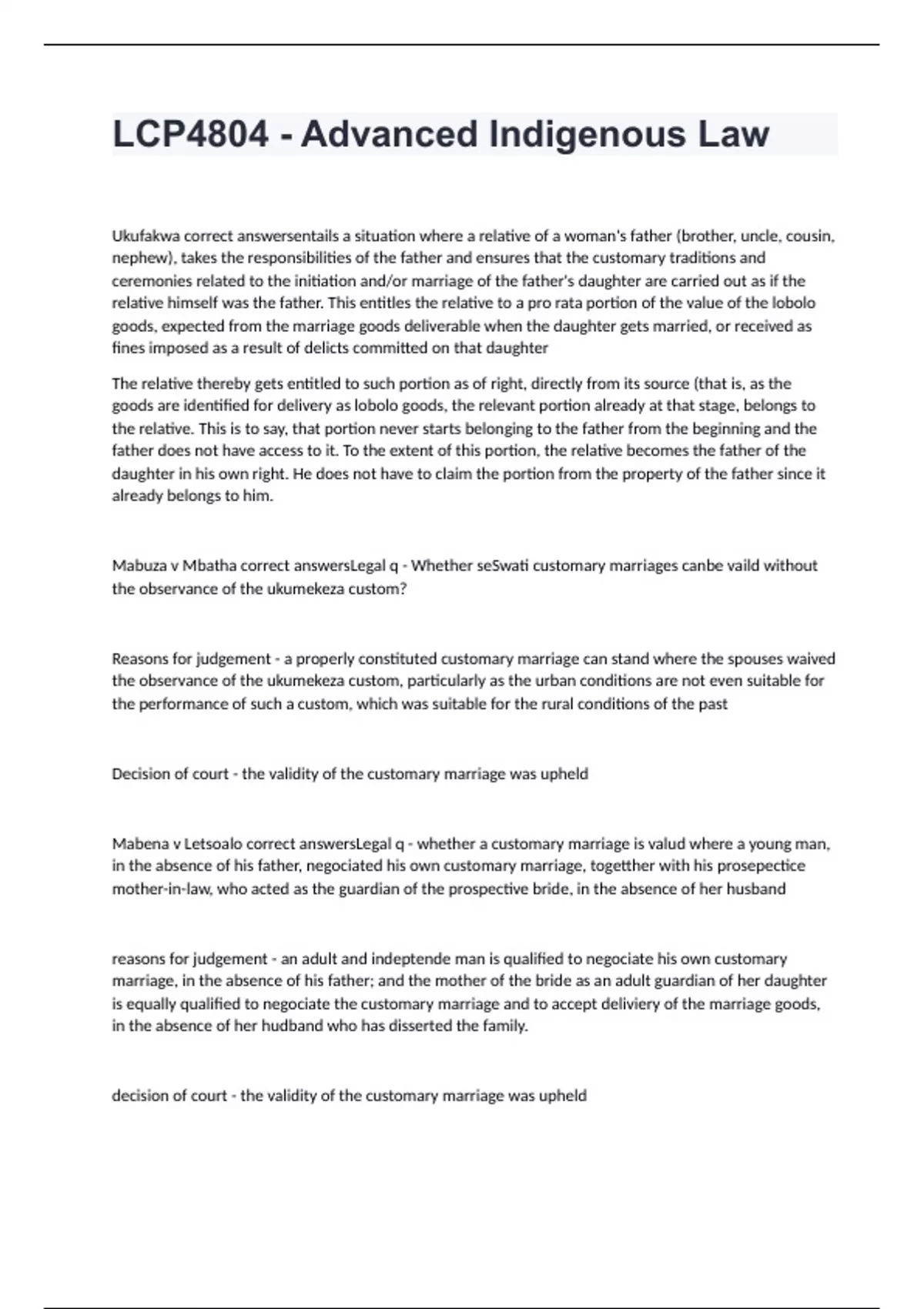 - LCP4804 - Advanced Indigenous Law