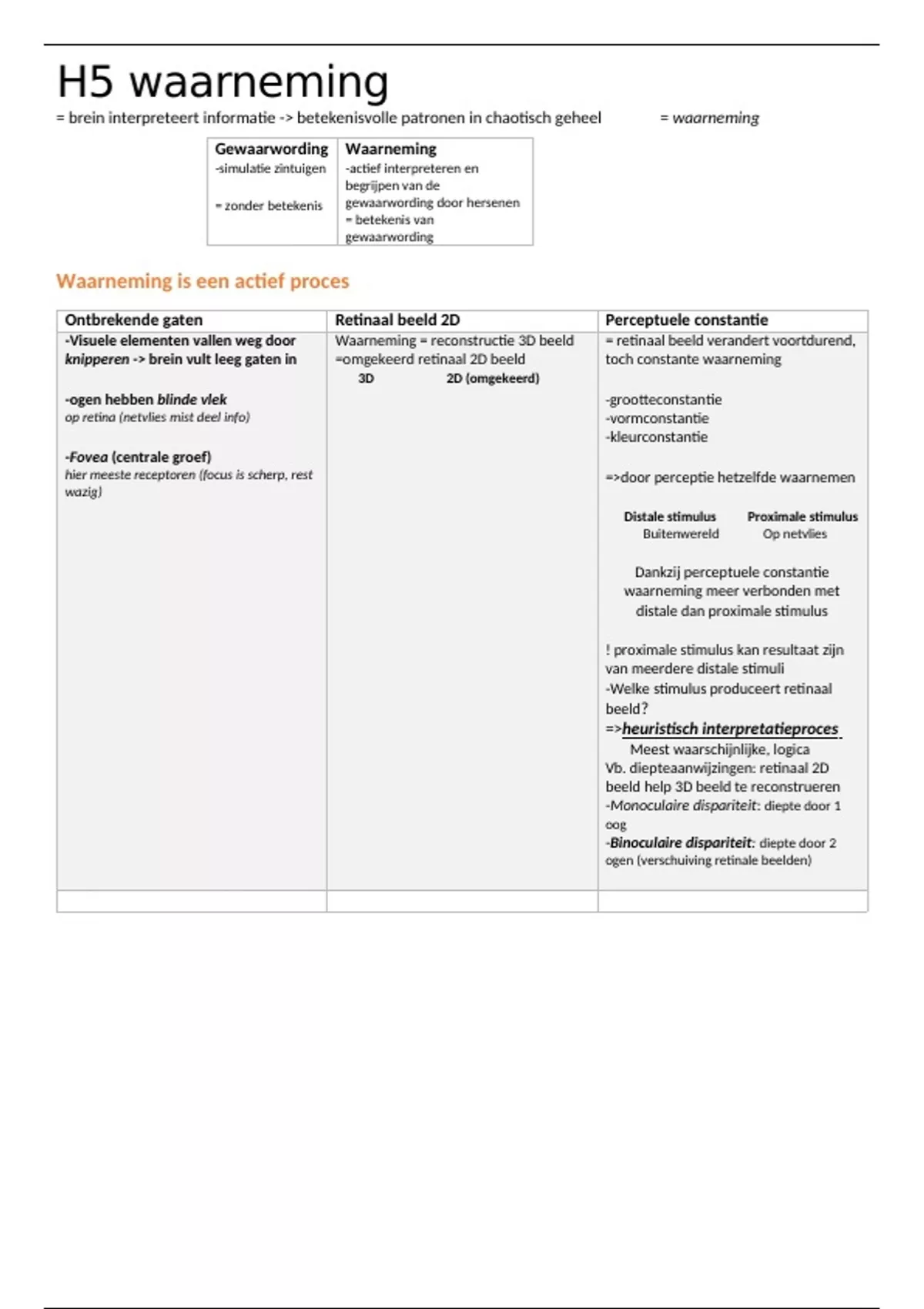 -Visuele elementen vallen weg door Waarneming = reconstructie 3D beeld = retinaal beeld verandert voortdurend,