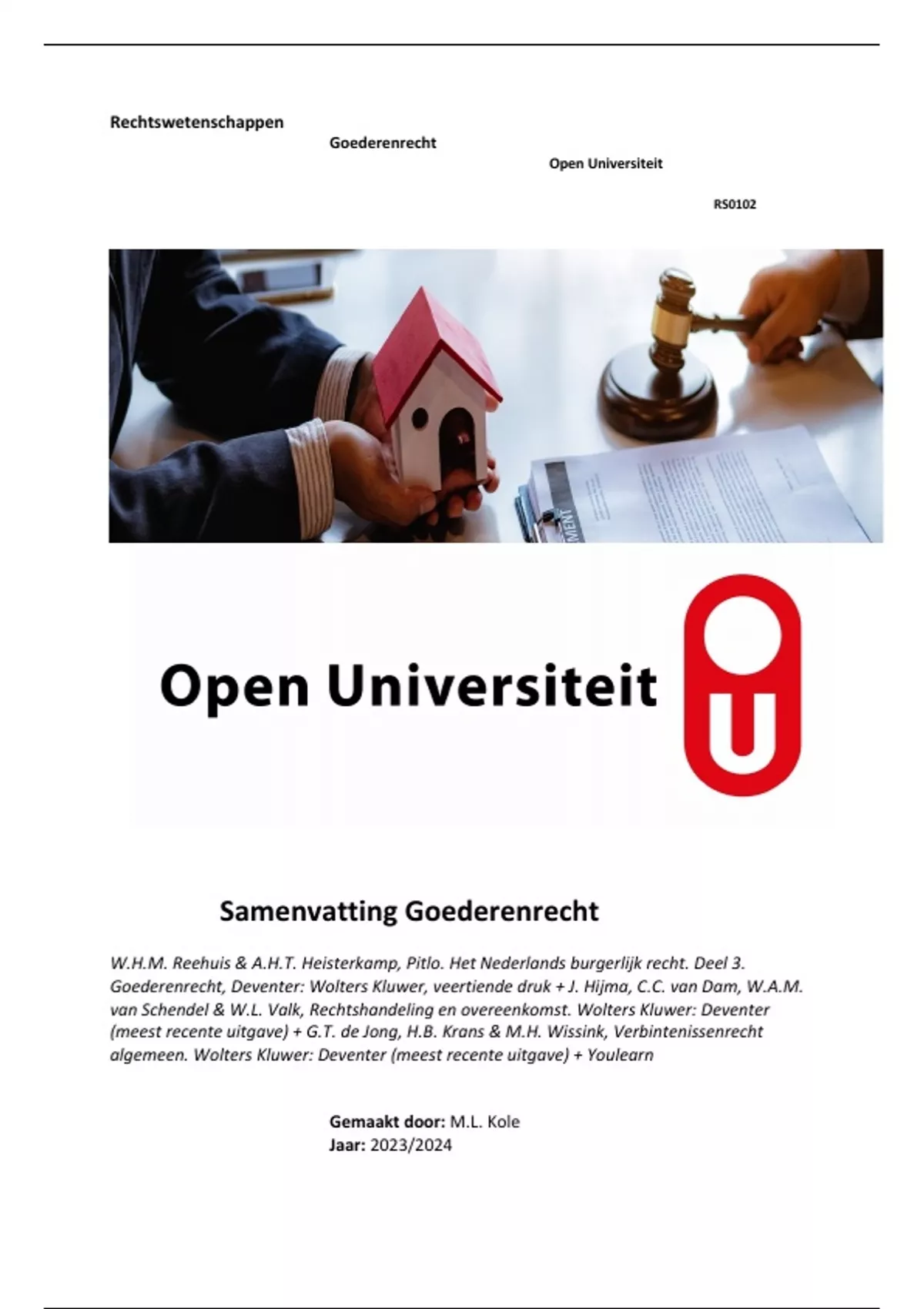 Uitgebreide samenvatting Goederenrecht, Pitlo deel 3, Rechtshandeling en overeenkomst en Verbintenissenrecht algemeen + ALLE jurisprudentie en aanvullende teksten cursussite Youlearn, Schakelzone recht Open Universiteit.
