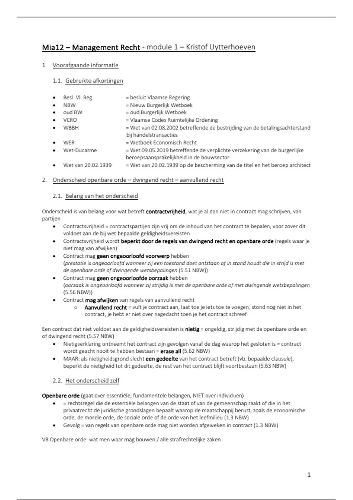 Mia12 – Management Recht - module 1 – Kristof Uytterhoeven