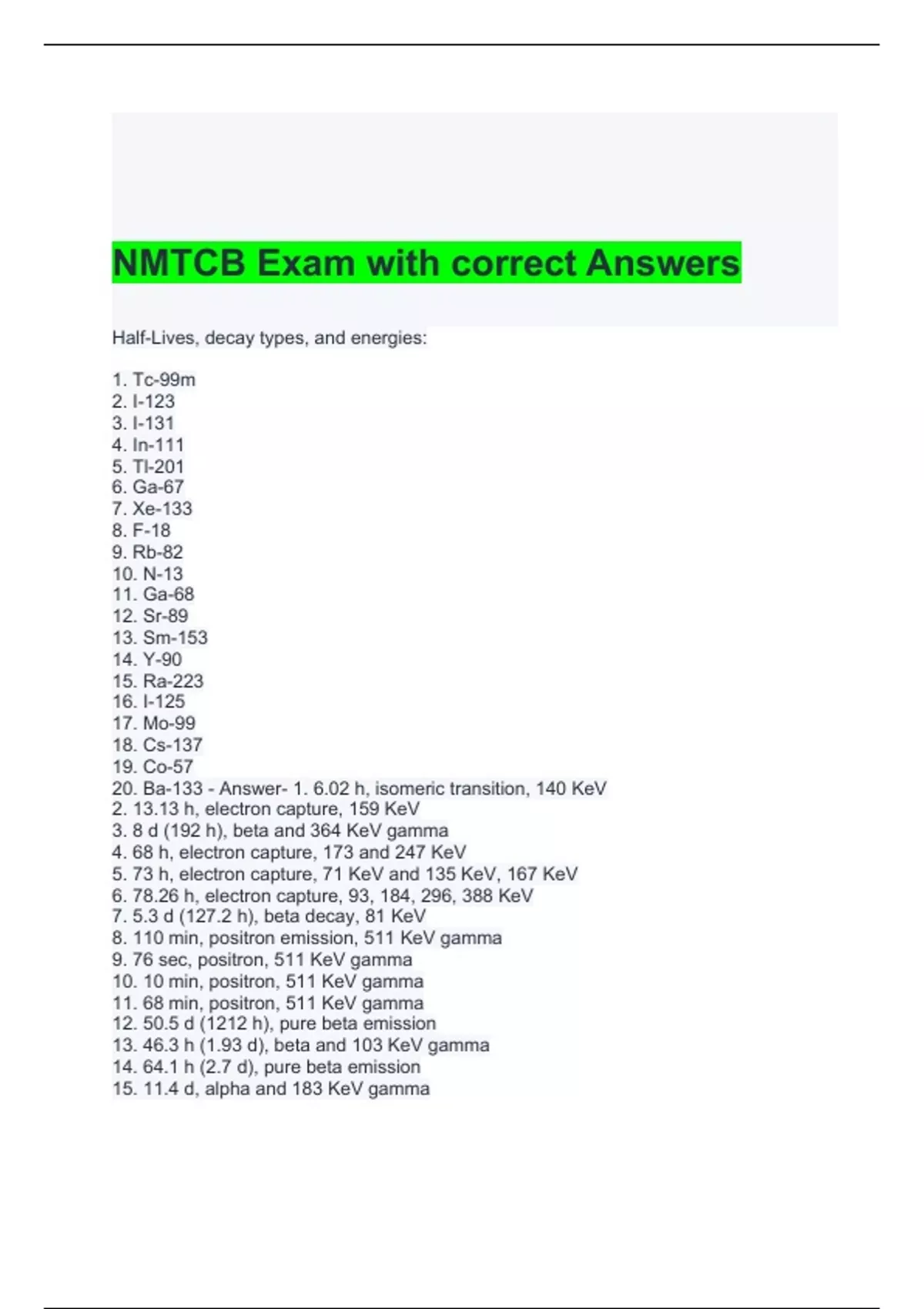 NMTCB Exam with correct Answers