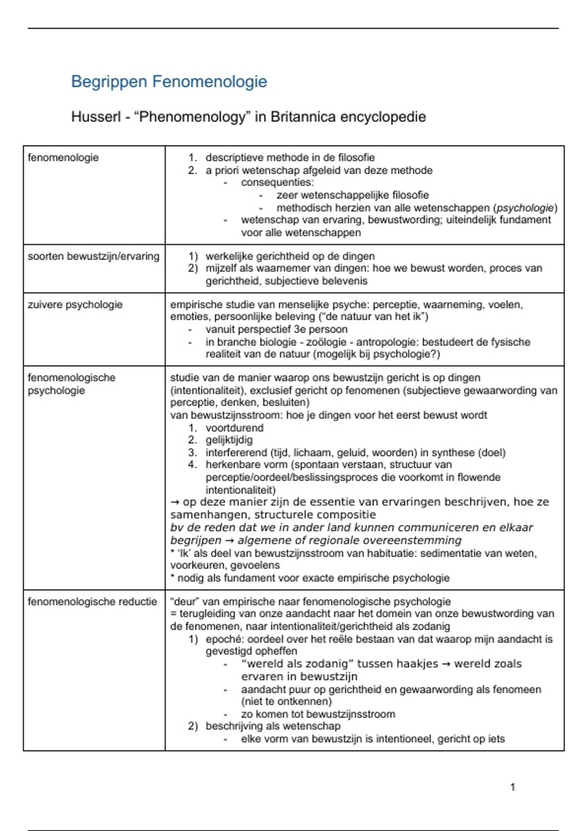 Samenvatting Begrippenlijst Fenomenologie