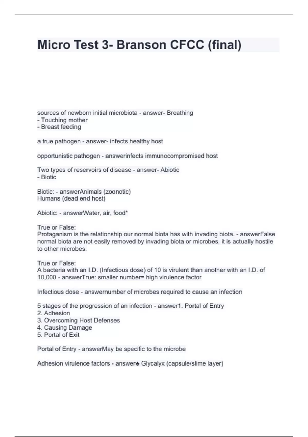 A bacteria with an I.D. (Infectious dose) of 10 is virulent than another with an I.D. of 10,000 - answerTrue: smaller number= high virulence factor