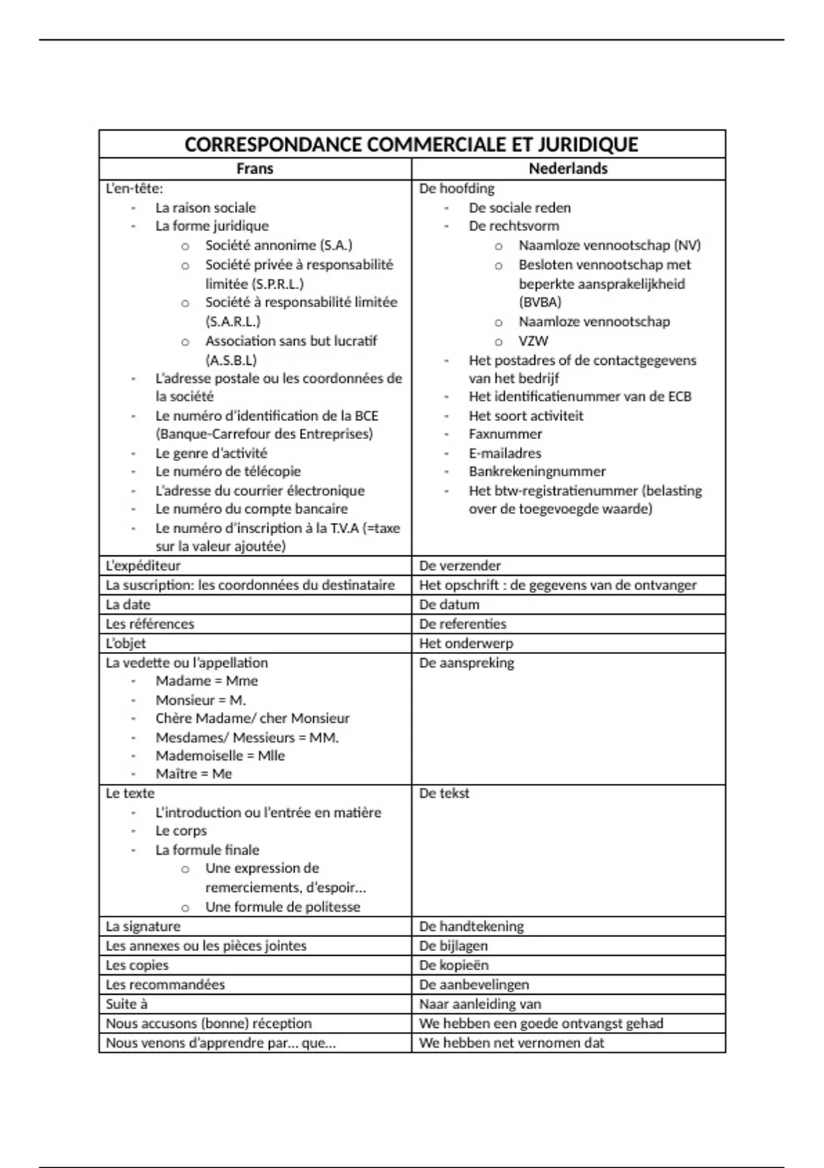 Samenvatting Woordenlijst juridisch Frans