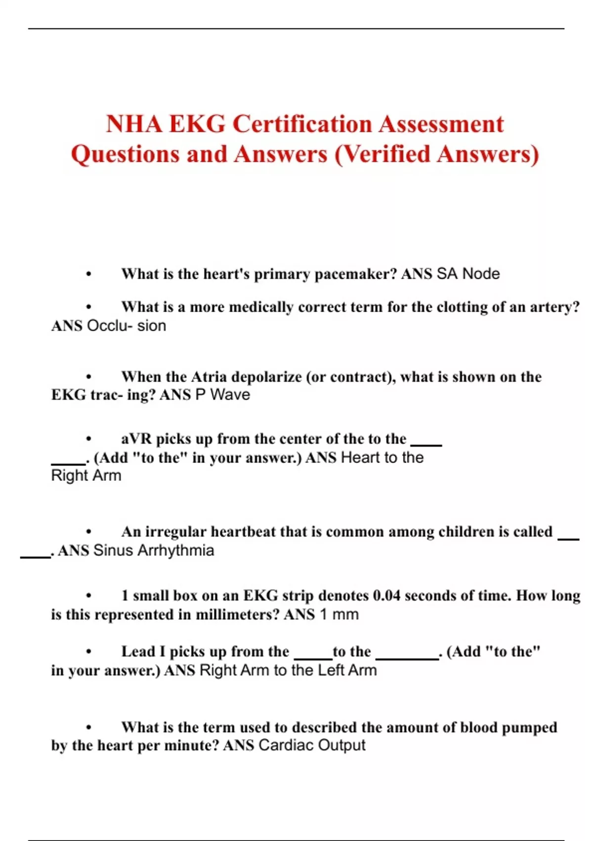 nha ekg certification test verified ques