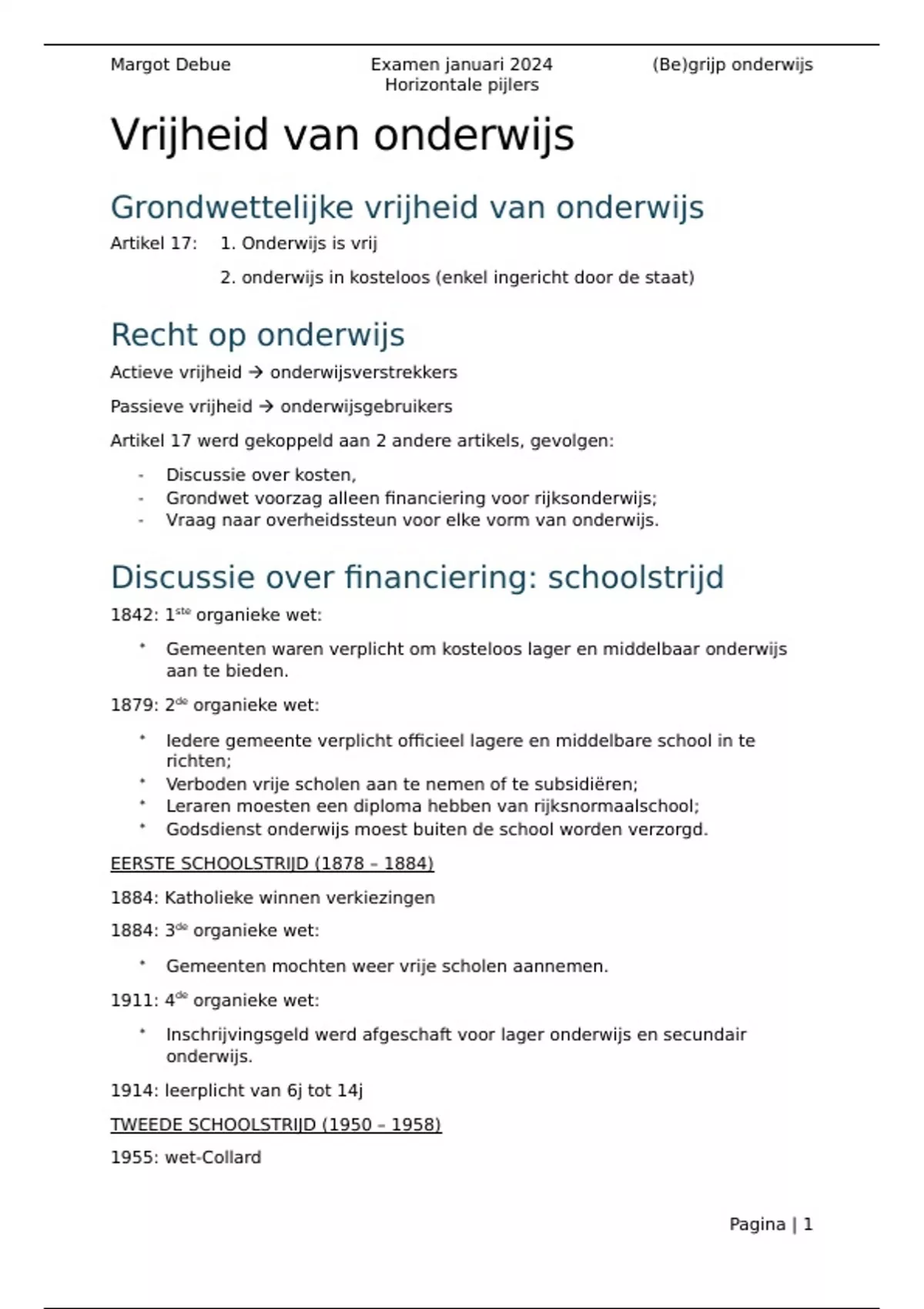 * Vrij onderwijs heeft recht op subsidiering, in ruil voor overheidscontrole.