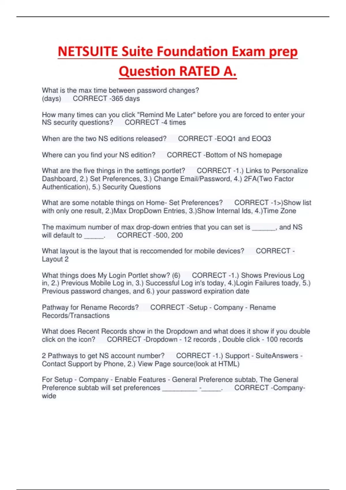 NETSUITE Suite Foundation Exam prep Question RATED A.