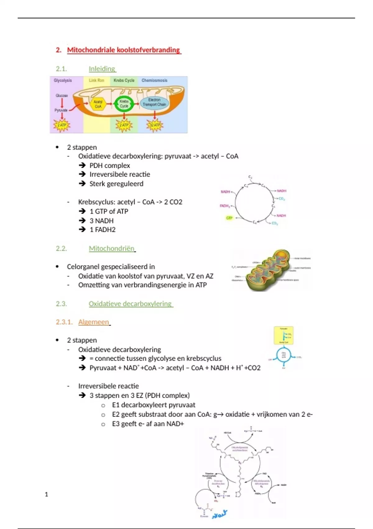 Samenvatting mitochondriale koolstofverbranding (hoofdstuk 2)