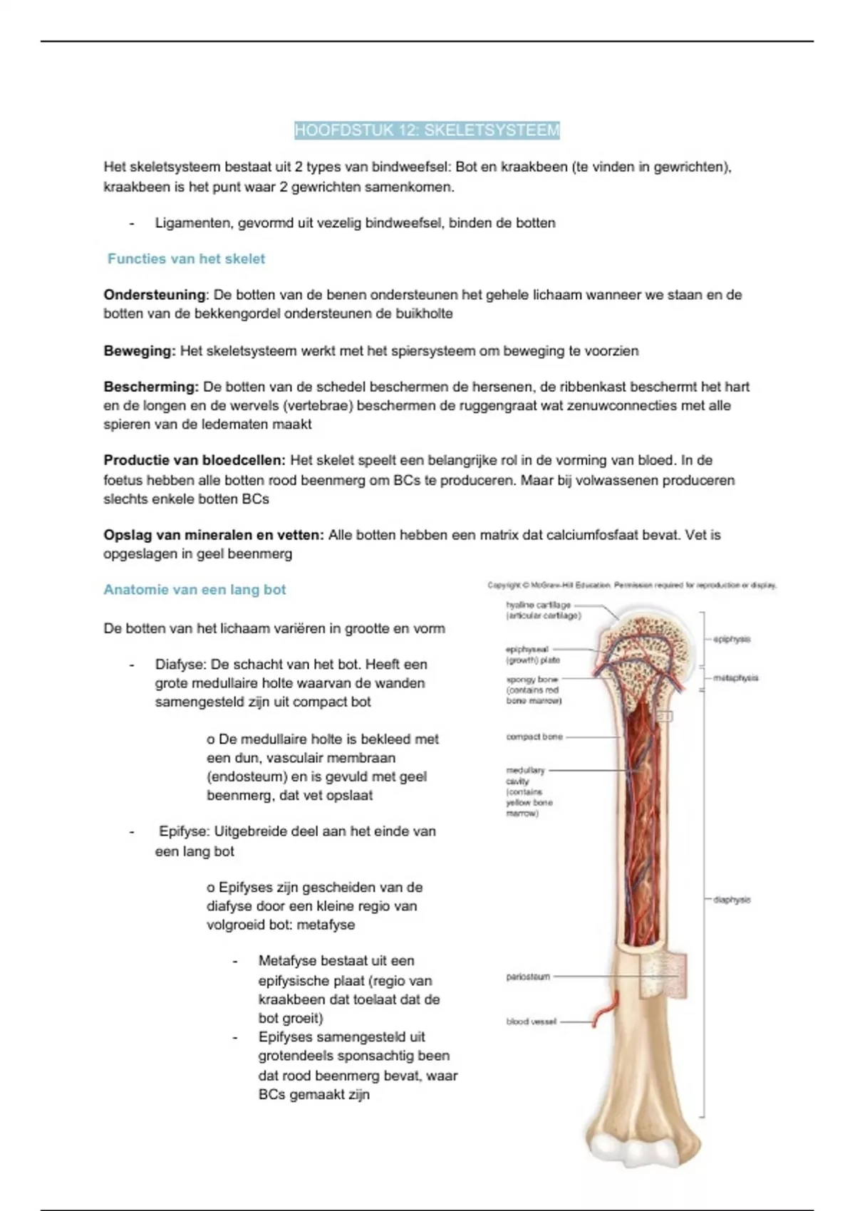 Het skeletsysteem bestaat uit 2 types van bindweefsel: Bot en kraakbeen (te vinden in gewrichten),