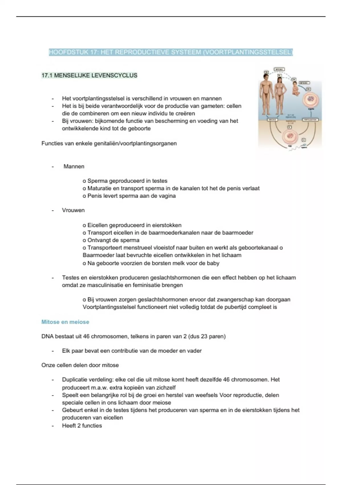 17.1 MENSELIJKE LEVENSCYCLUS