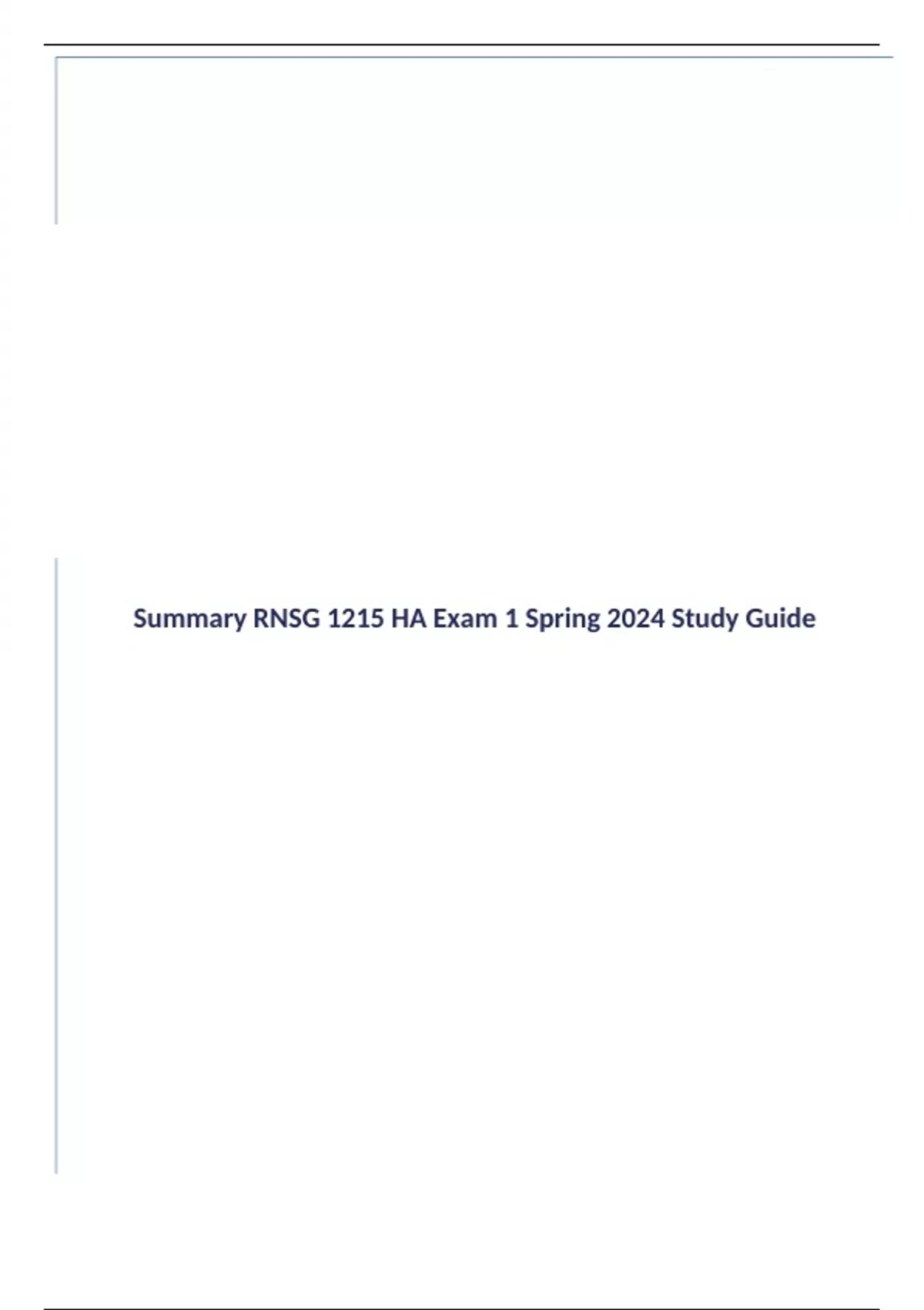 RNSG 1215 HA Exam 1 Spring 2024 Study Guide Complete.