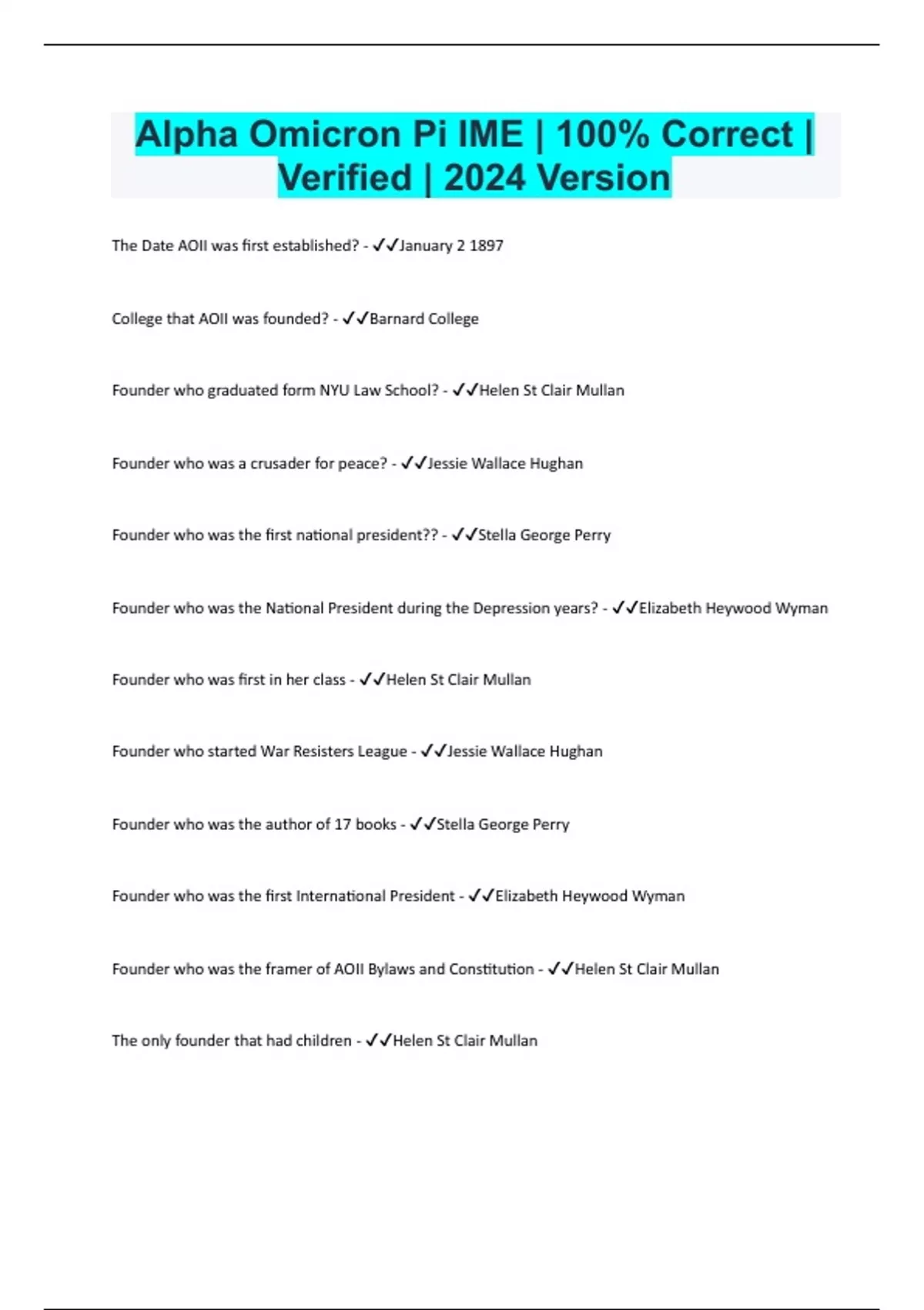 Alpha Omicron Pi IME | 100% Correct | Verified | 2024 Version