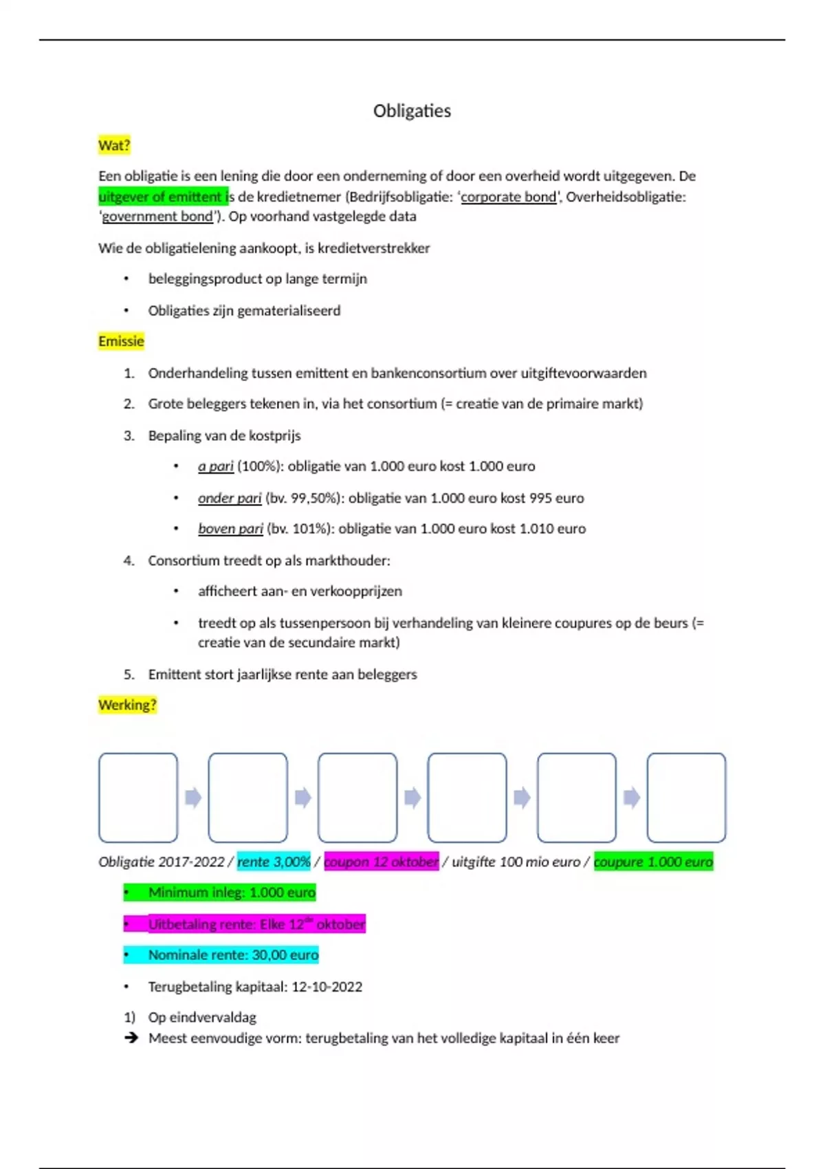 • boven pari (bv. 101%): obligatie van 1.000 euro kost 1.010 euro