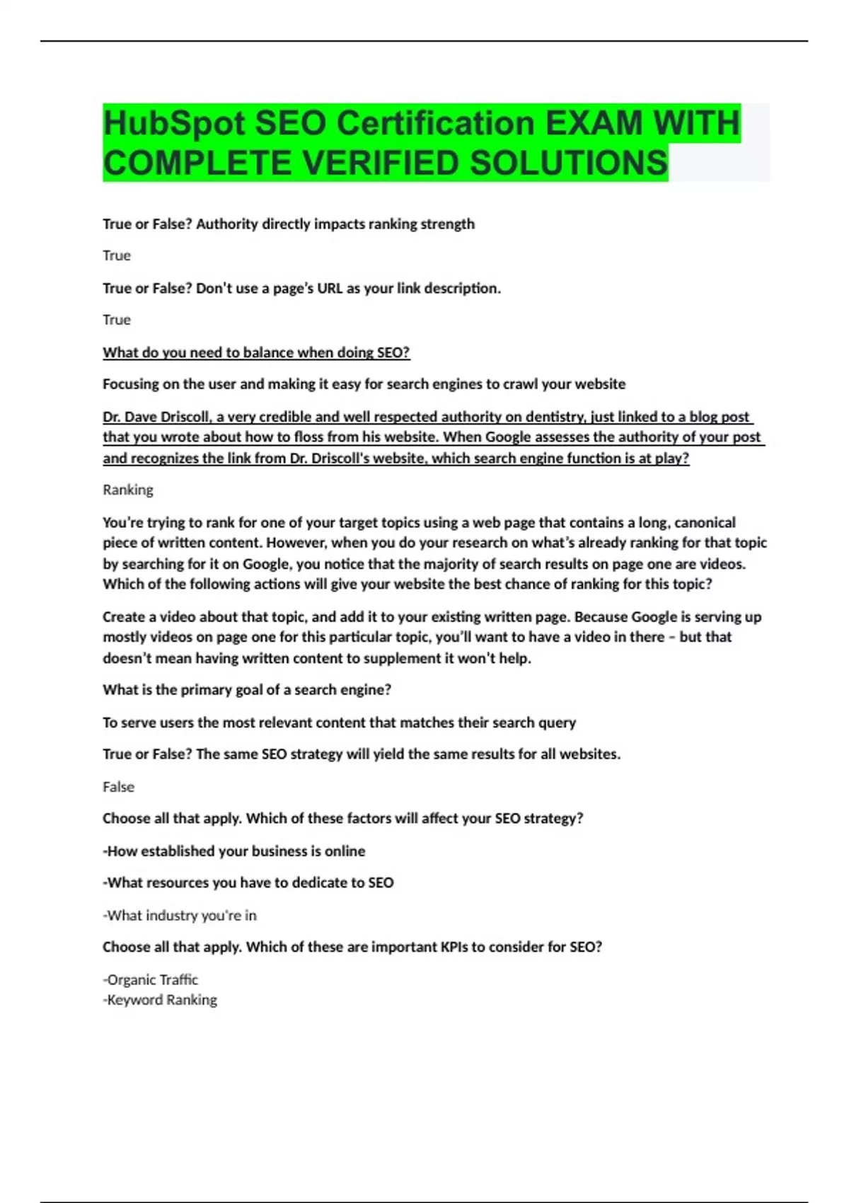 HubSpot SEO Certification EXAM WITH COMPLETE VERIFIED SOLUTIONS.
