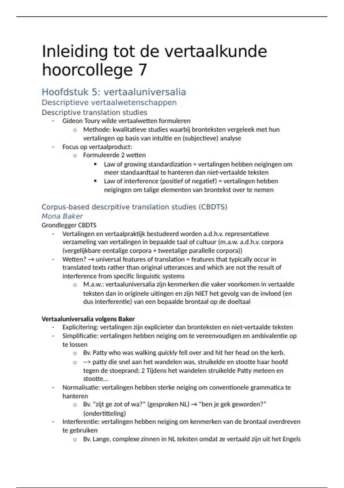 Met deze samenvatting behaalde ik 18/20 in eerste zit! Deze samenvatting bevat alles van les 7 van Inleiding tot de Vertaalkunde