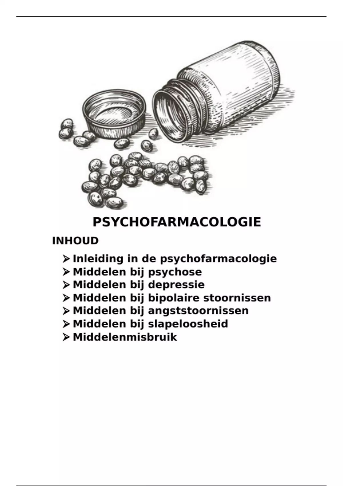 Volledige samenvatting van psychofarmacologie. Ik heb dit gemaakt a.d.h.v notities tijdens de les, powerpoint, cursus en lesopnames.