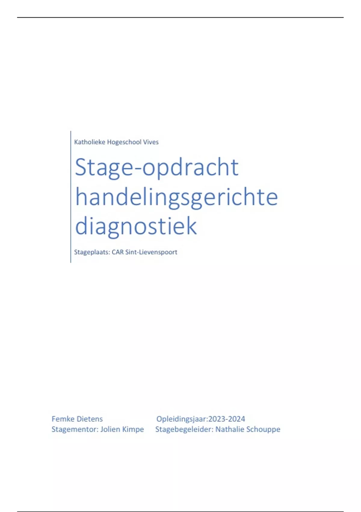 Stagementor: Jolien Kimpe Stagebegeleider: Nathalie Schouppe