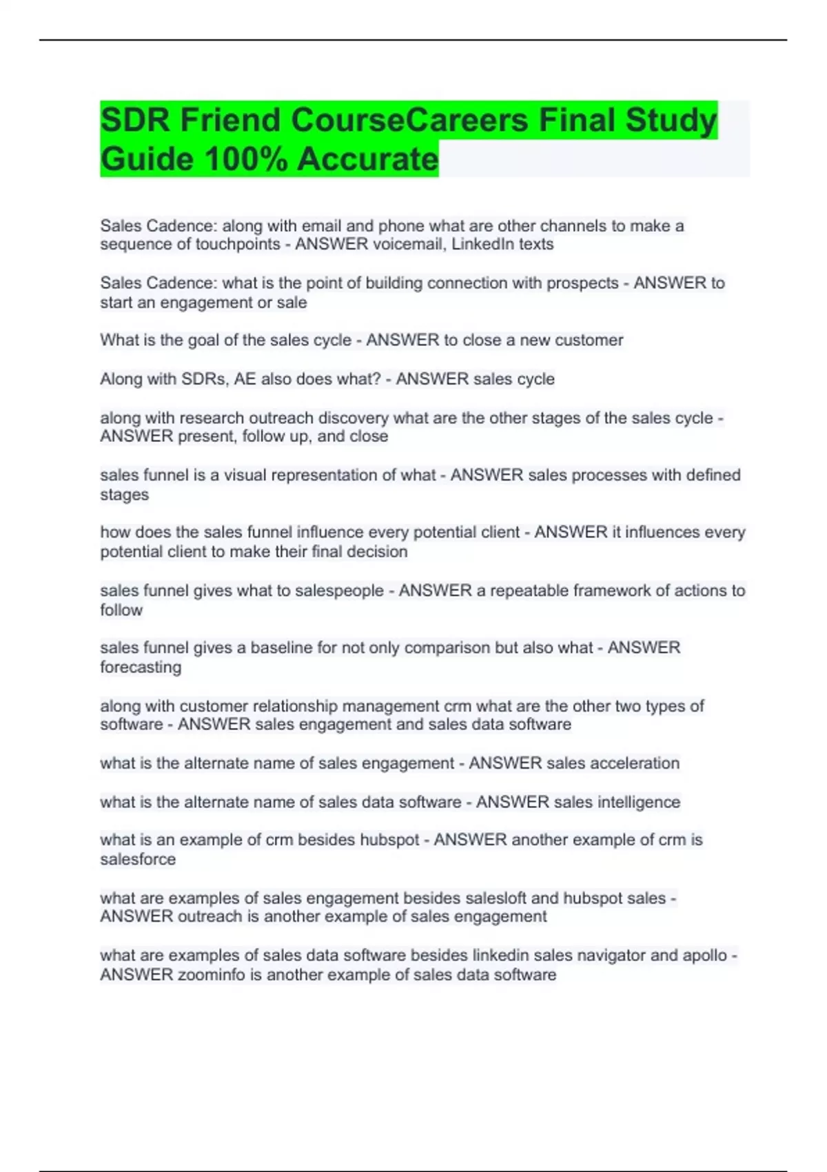 SDR Friend CourseCareers Final Study Guide 100% Accurate