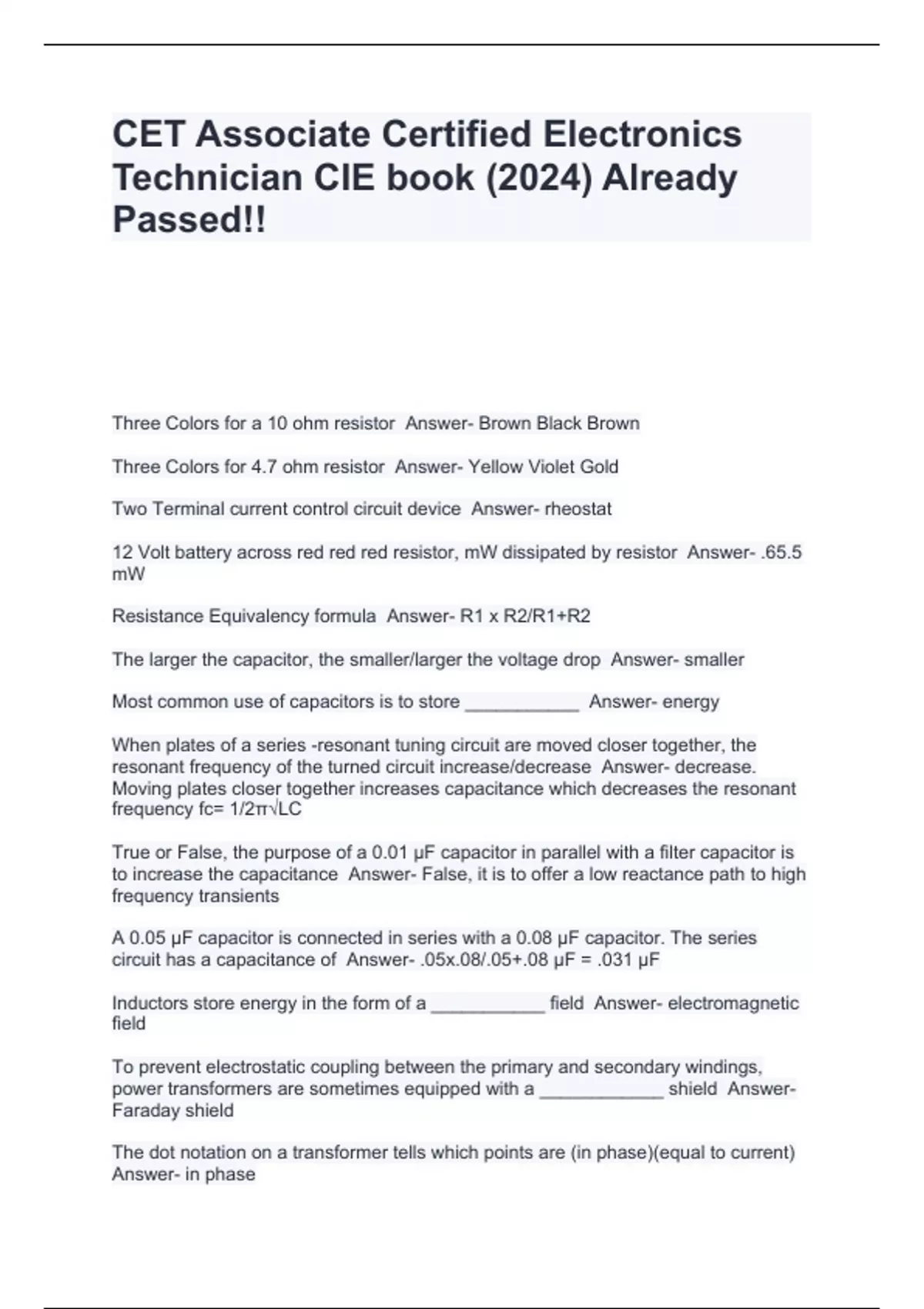 CET Associate Certified Electronics Technician CIE book (2024) Already Passed!!