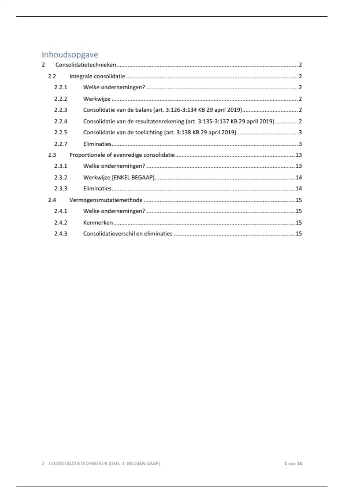 2 CONSOLIDATIETECHNIEKEN (DEEL 1: BELGIAN GAAP) 2 van 16