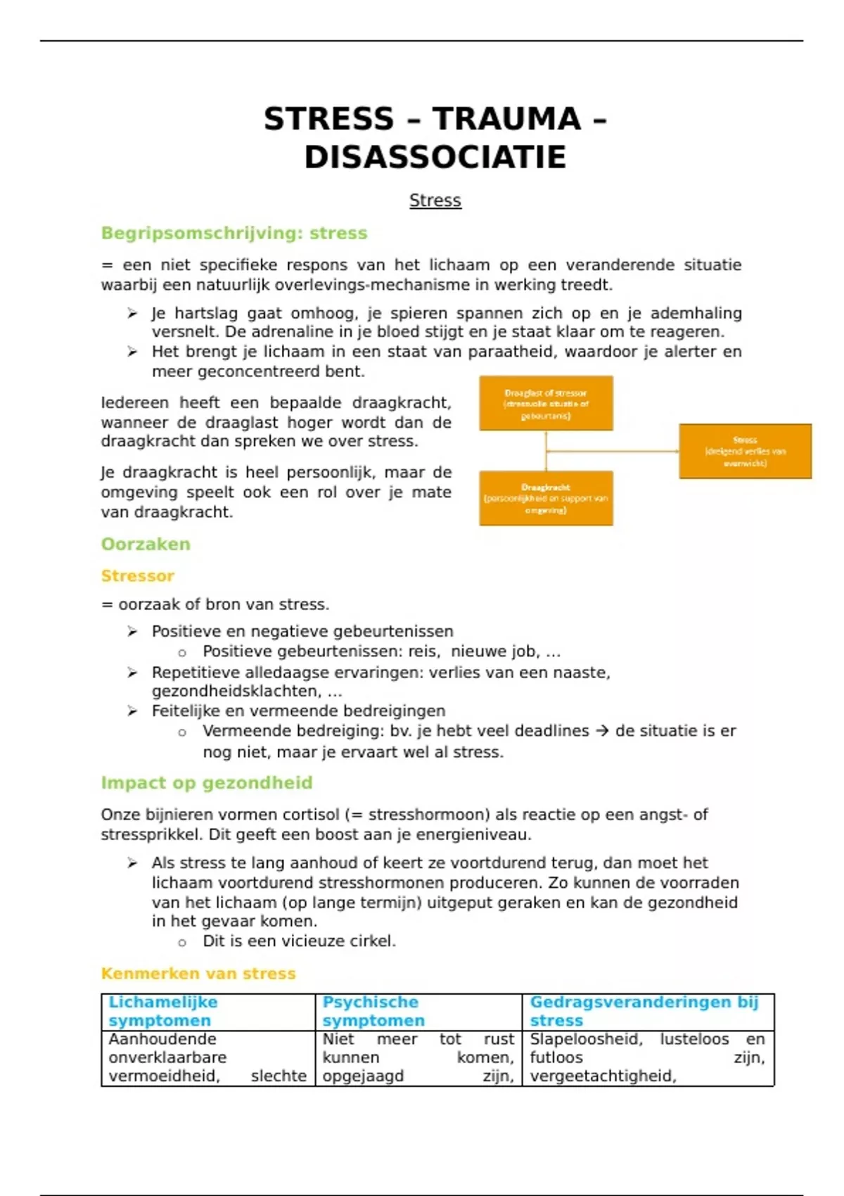 Volledige samenvatting van STRESS - TRAUMA - DISSOCIATIE voor het examen van psychopathologie en psychofarmacologie.