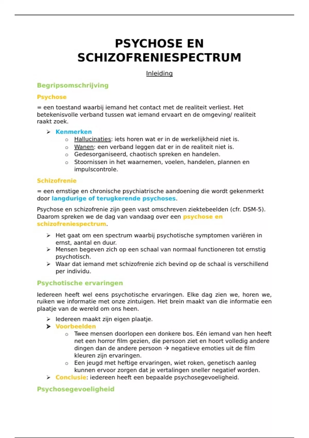 Samenvatting Psychopathologie: Psychose en schizofreniespectrum