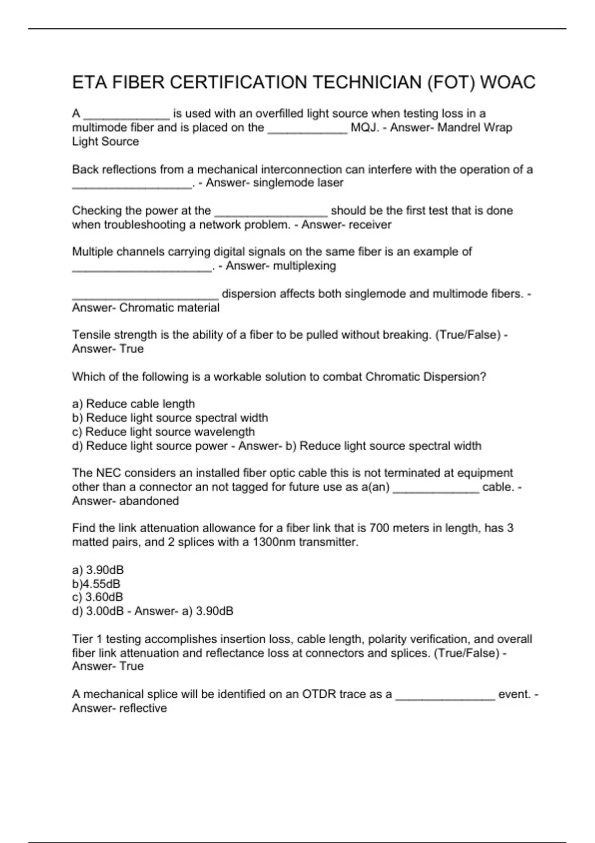 ETA FIBER CERTIFICATION TECHNICIAN (FOT) WOAC