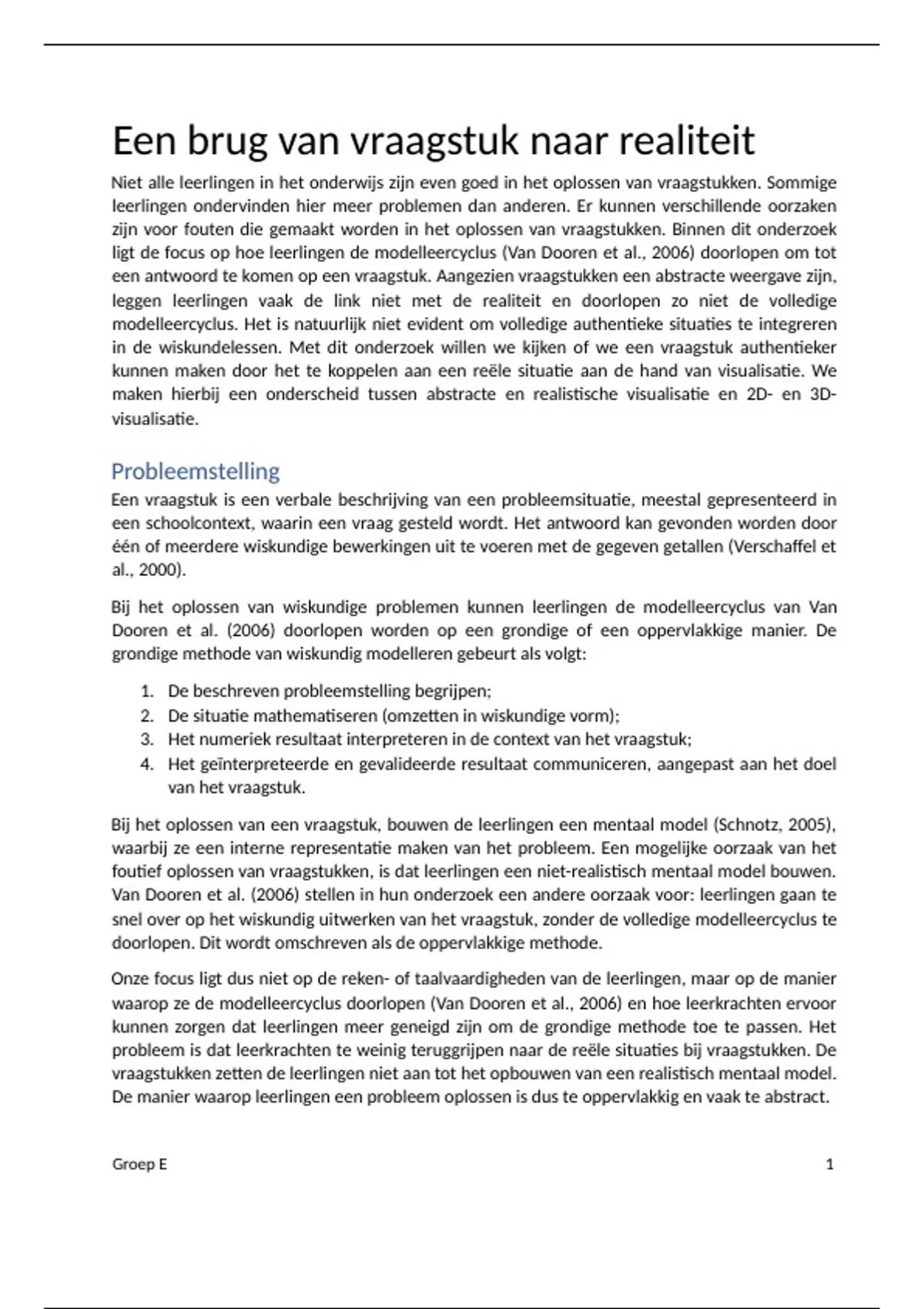 ligt de focus op hoe leerlingen de modelleercyclus (Van Dooren et al., 2006) doorlopen om tot