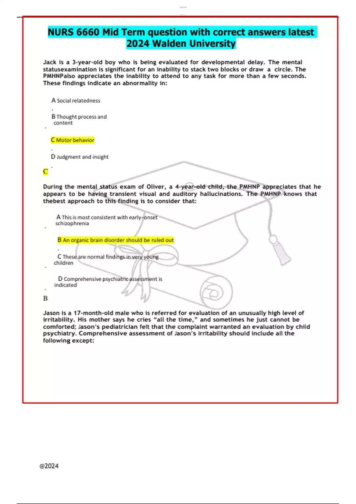 NURS 6660 Mid Term question with correct answers latest 2024 Walden University