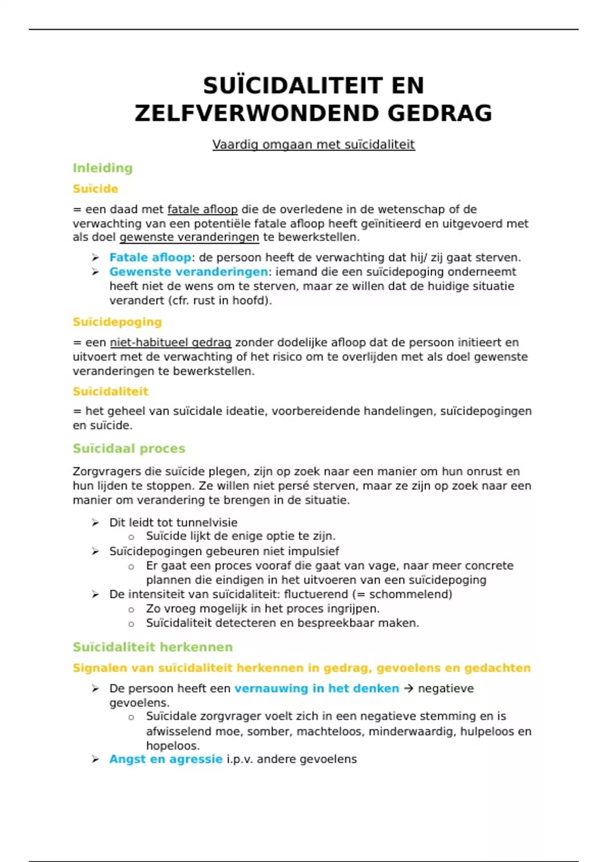 o Suïcidaliteit detecteren en bespreekbaar maken.