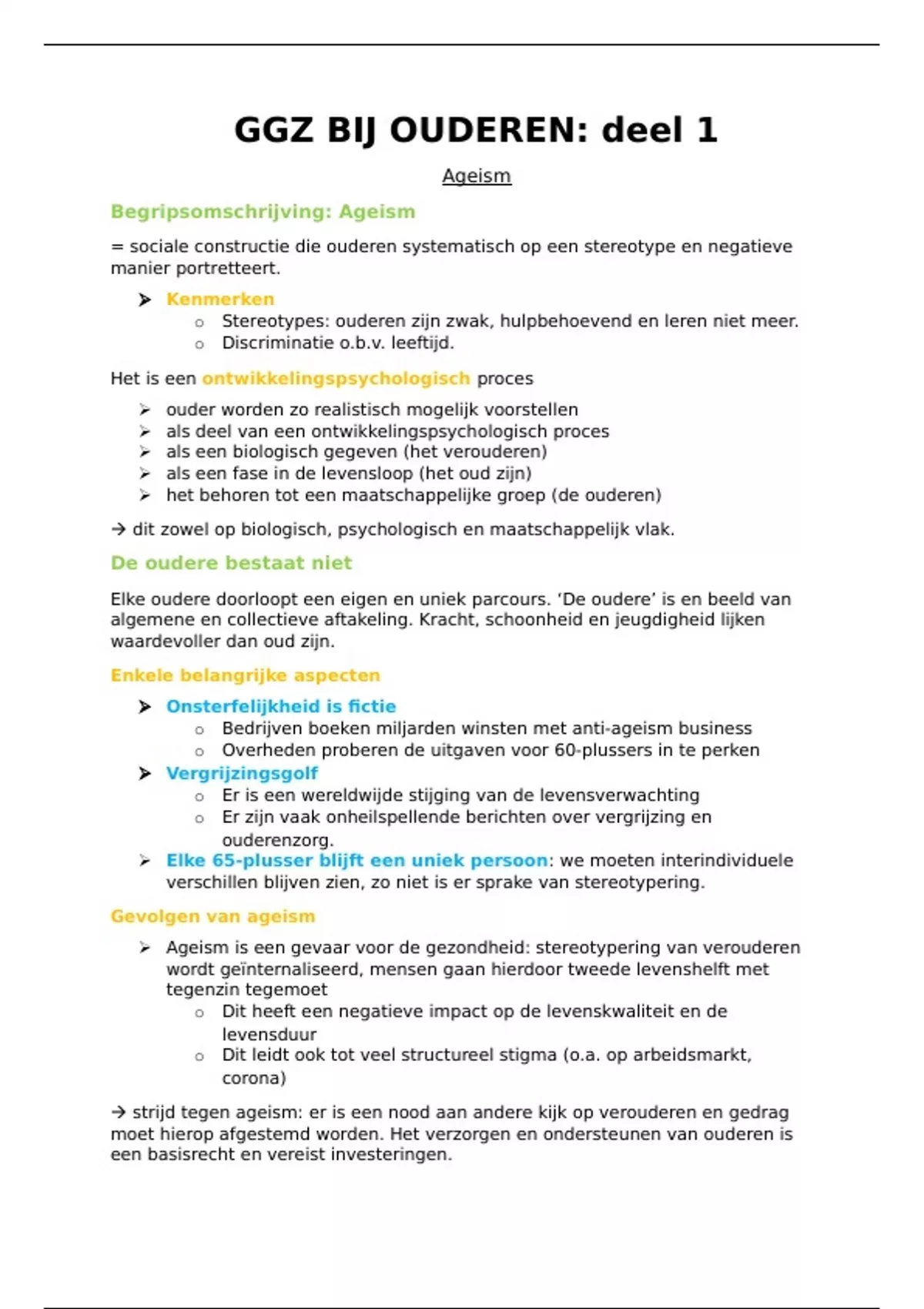 Samenvatting over GGZ bij ouderen. Opgelet: dit gaat enkel over het 1ste hoorcollege van GGZ bij ouderen!