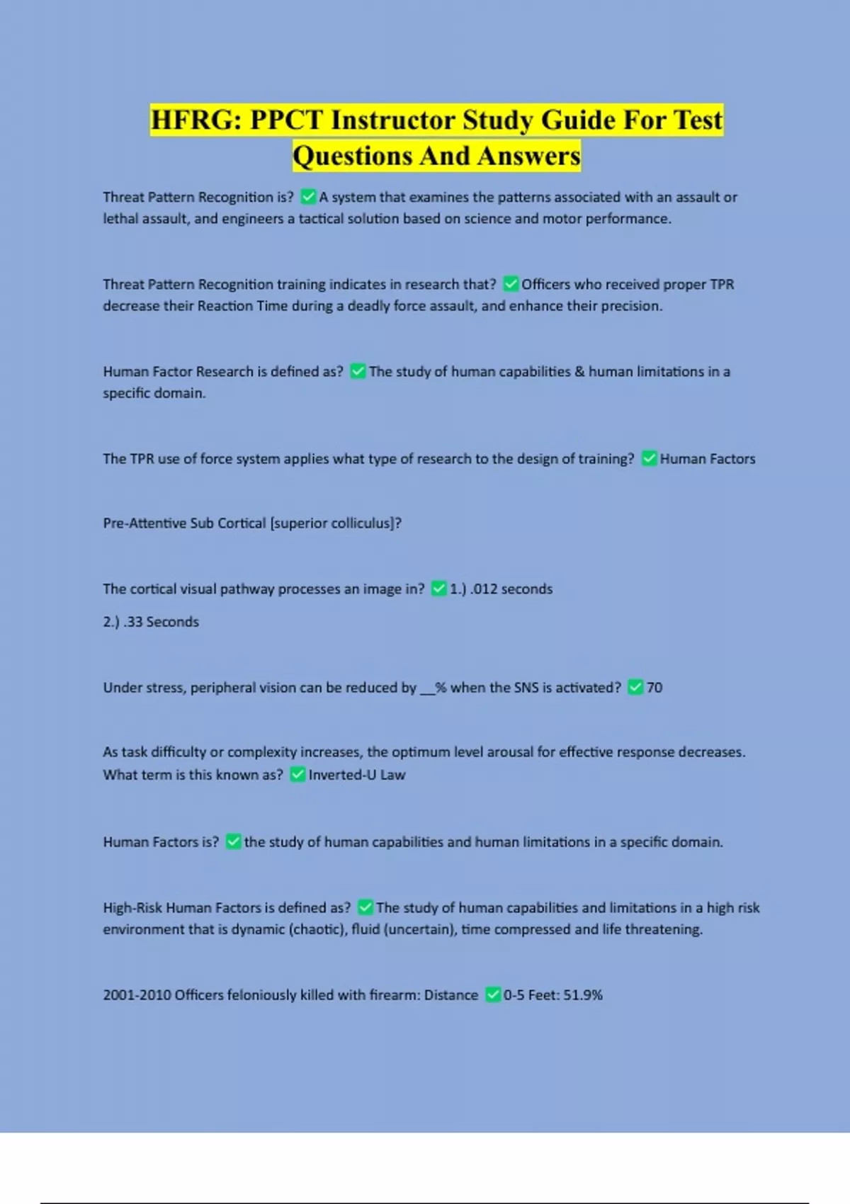 HFRG: PPCT Instructor Study Guide For Test Questions And Answers HFRG: PPCT Instructor Study Guide For Test Questions And Answers