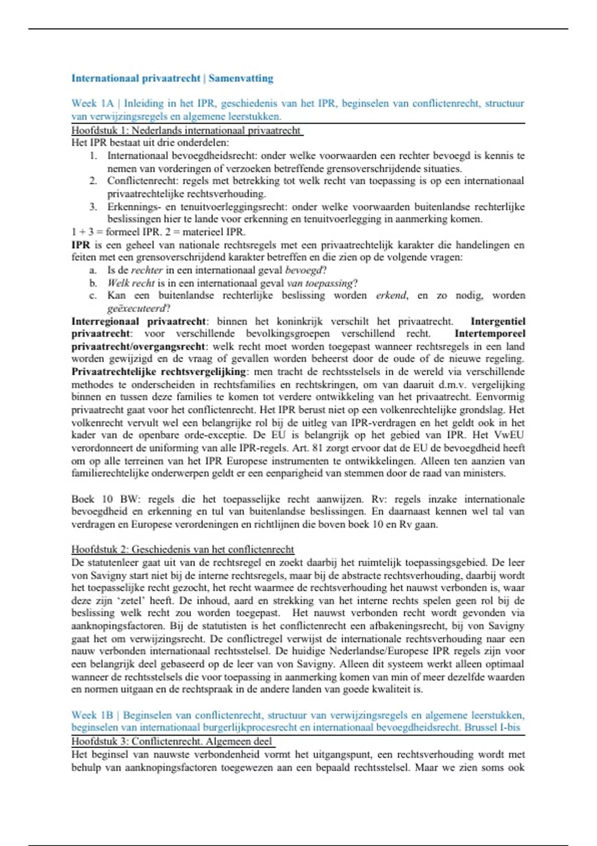 Week 1A | Inleiding in het IPR, geschiedenis van het IPR, beginselen van conflictenrecht, structuur
