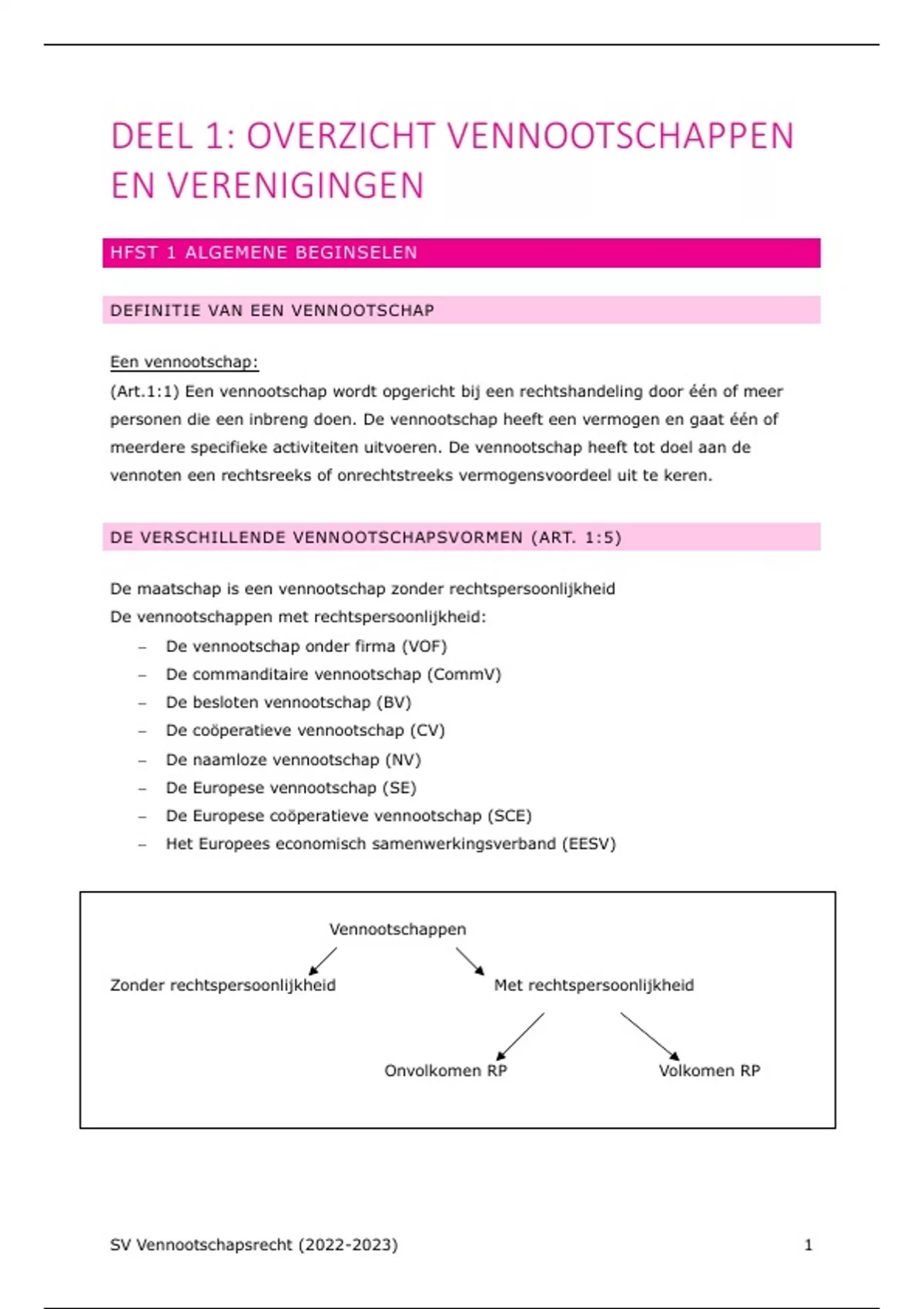 SV Vennootschapsrecht (2022-2023) 1