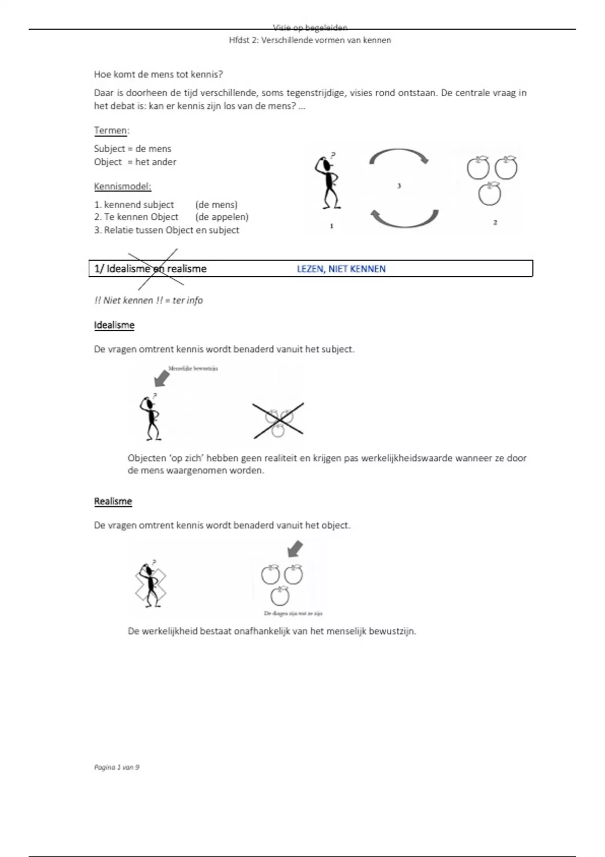 1/ Idealisme en realisme LEZEN, NIET KENNEN
