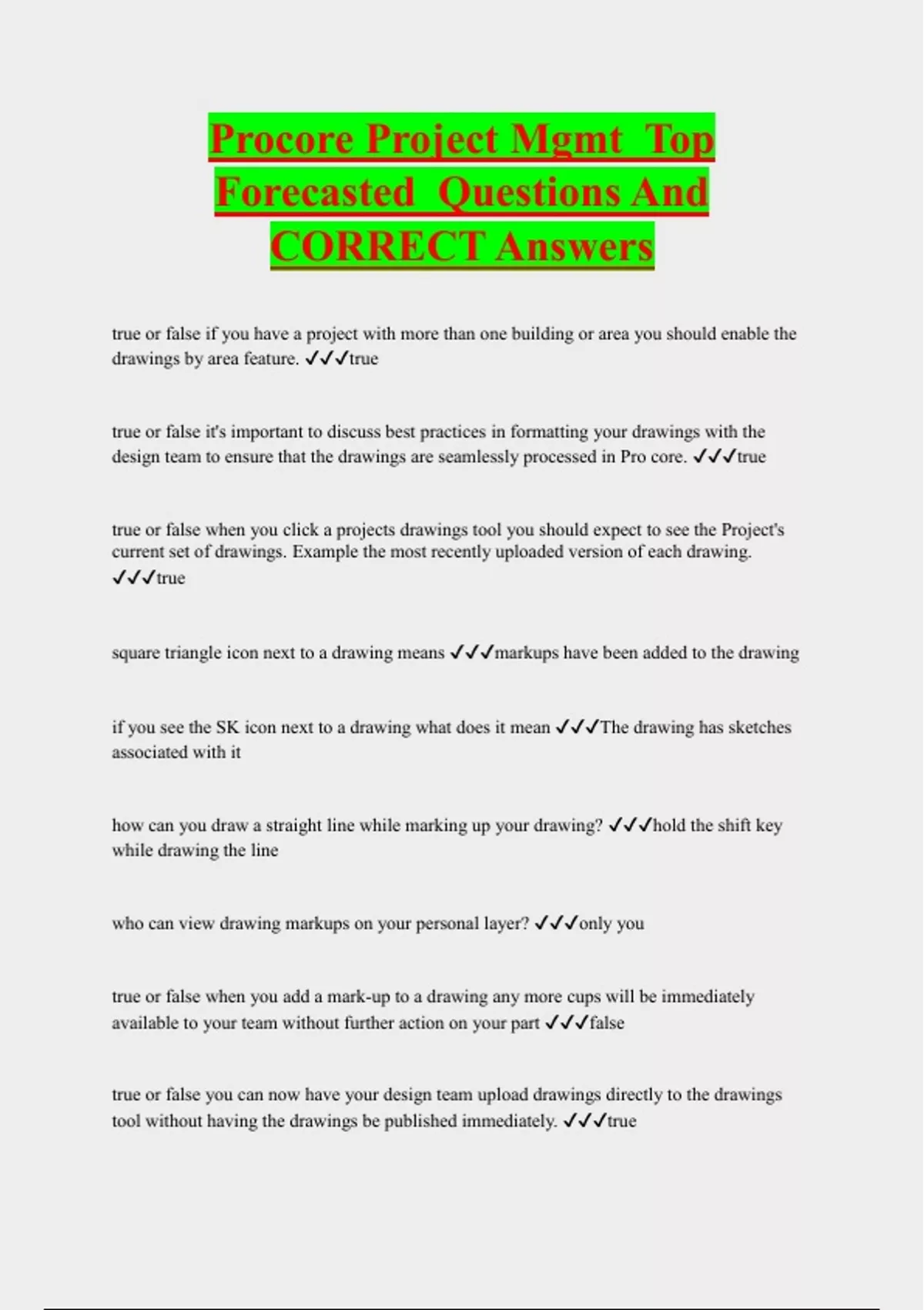Procore Project Mgmt Top Forecasted Questions And CORRECT Answers