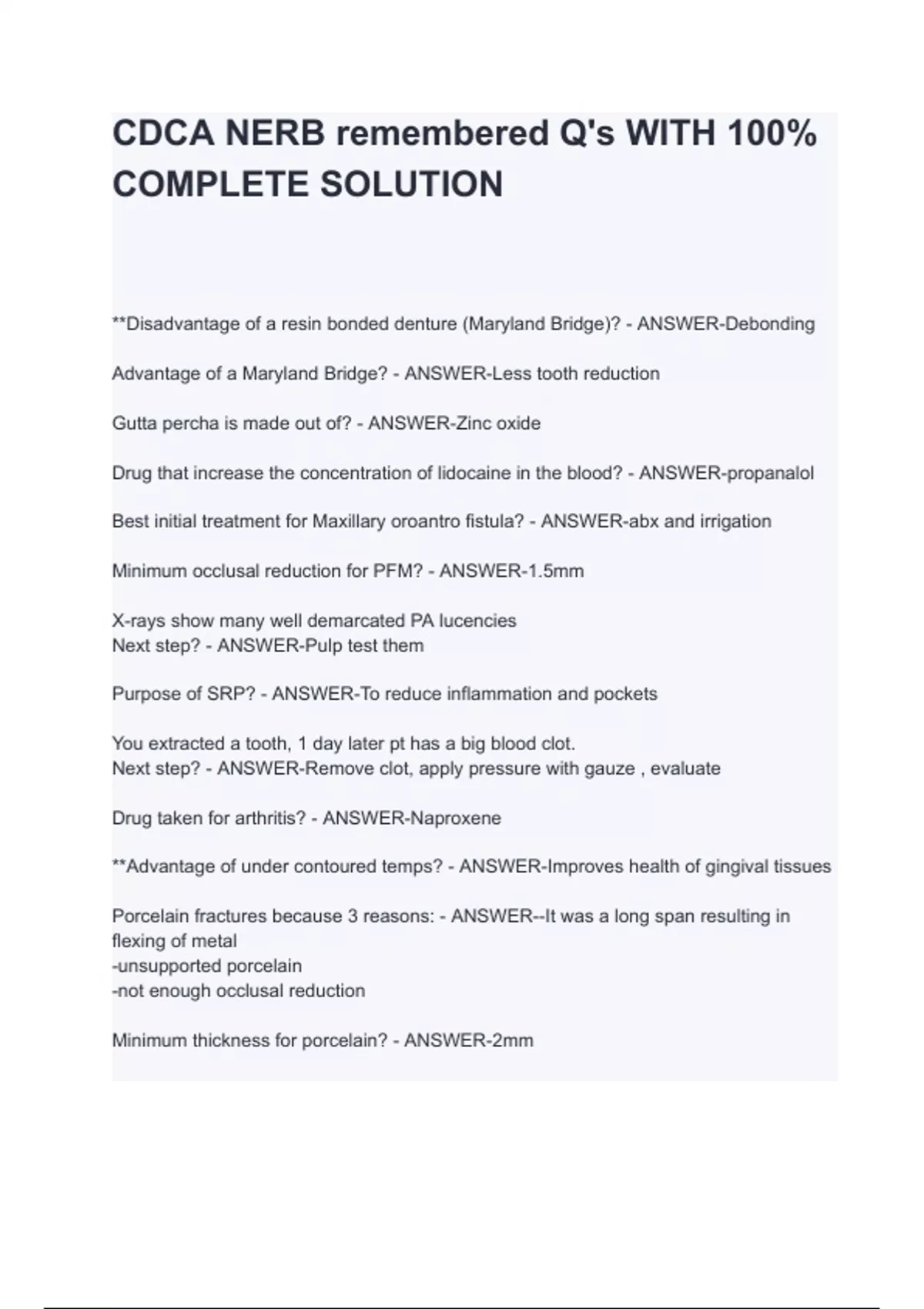 CDCA NERB remembered Q's WITH 100% COMPLETE SOLUTION