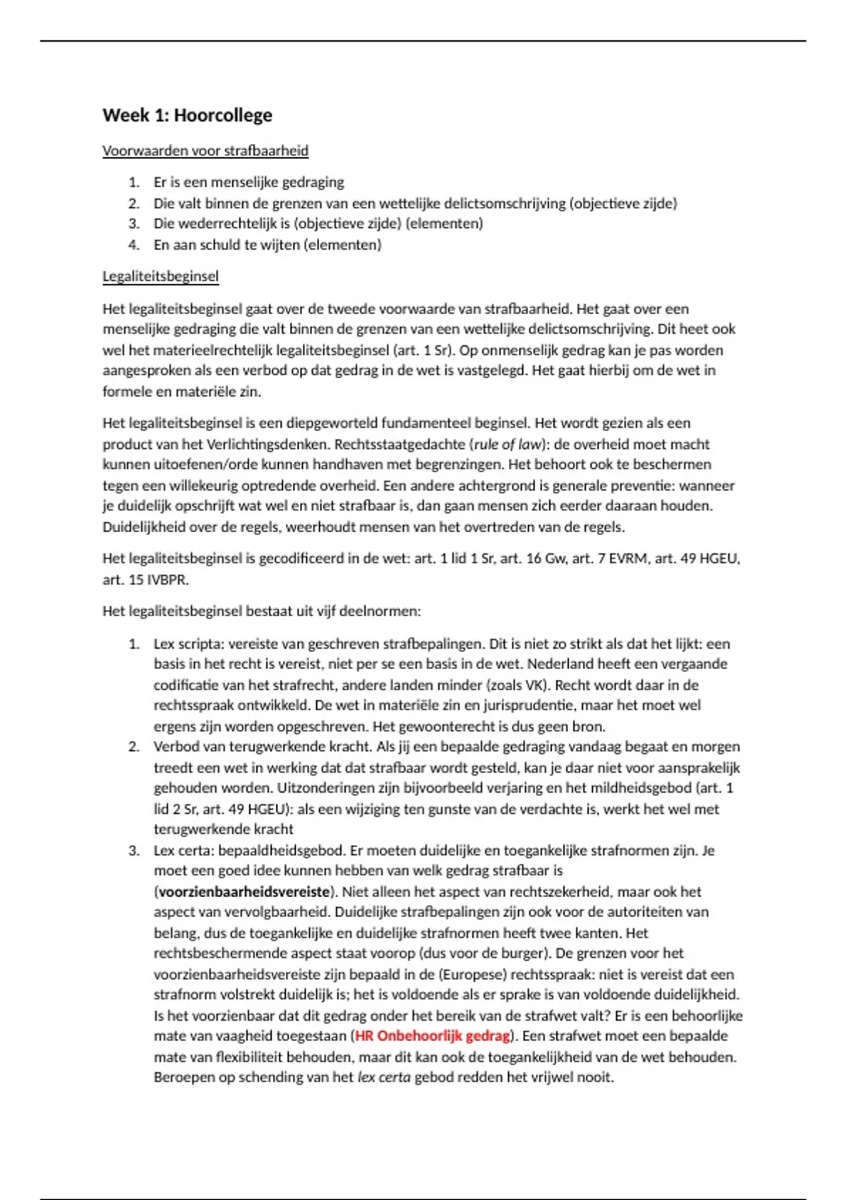 1. Lex scripta: vereiste van geschreven strafbepalingen. Dit is niet zo strikt als dat het lijkt: een