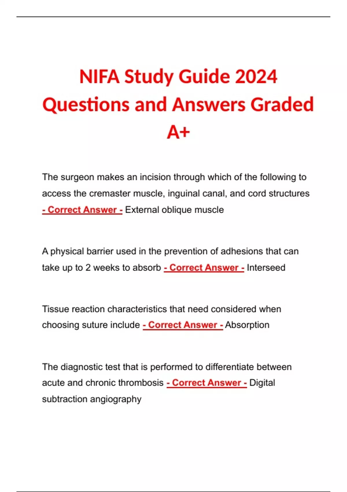 NIFA Study Guide 2024 Questions and Answers Graded A+