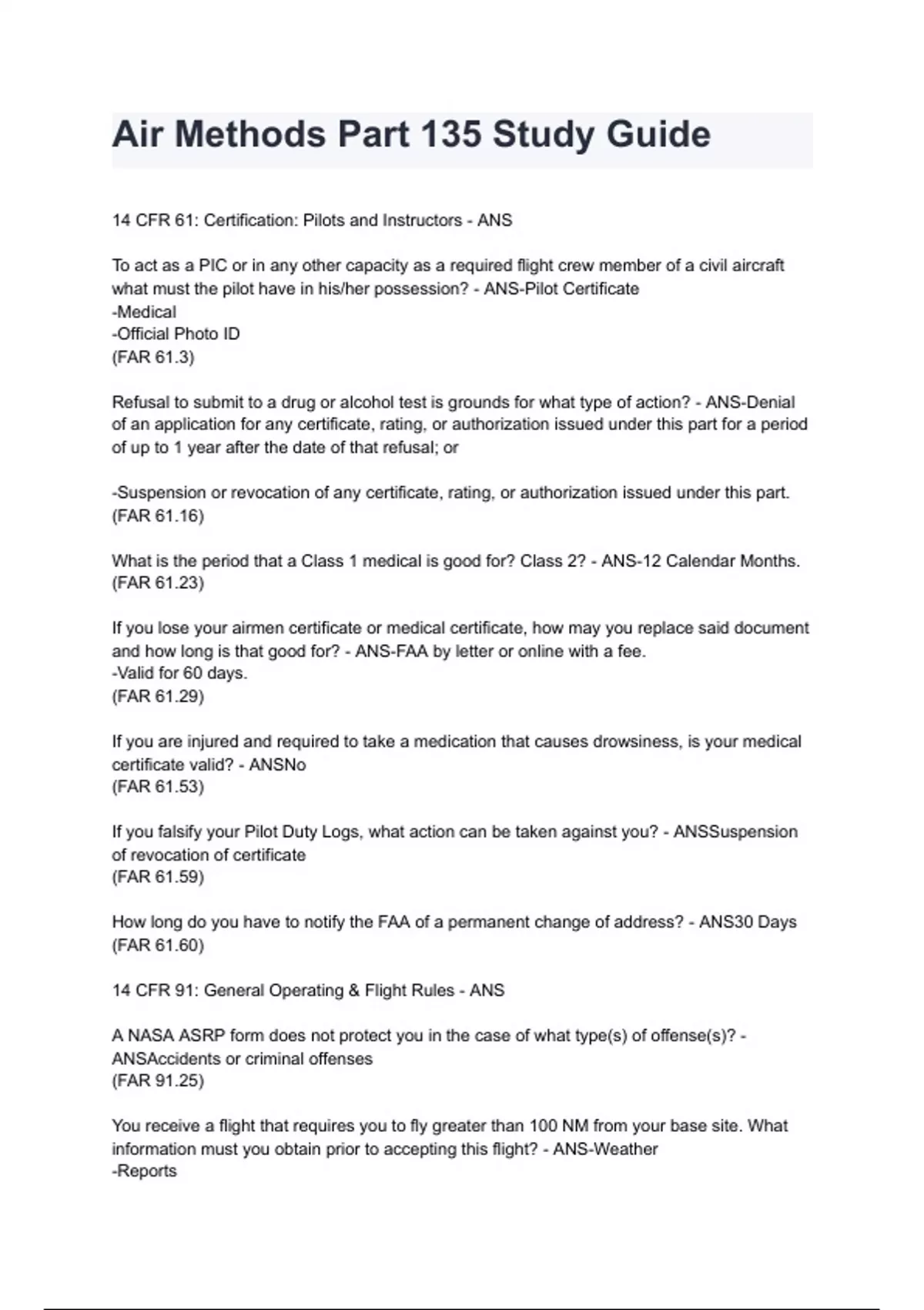 Air Methods Part 135 Study Guide 2024/2025 A+ score assured (100% verified)