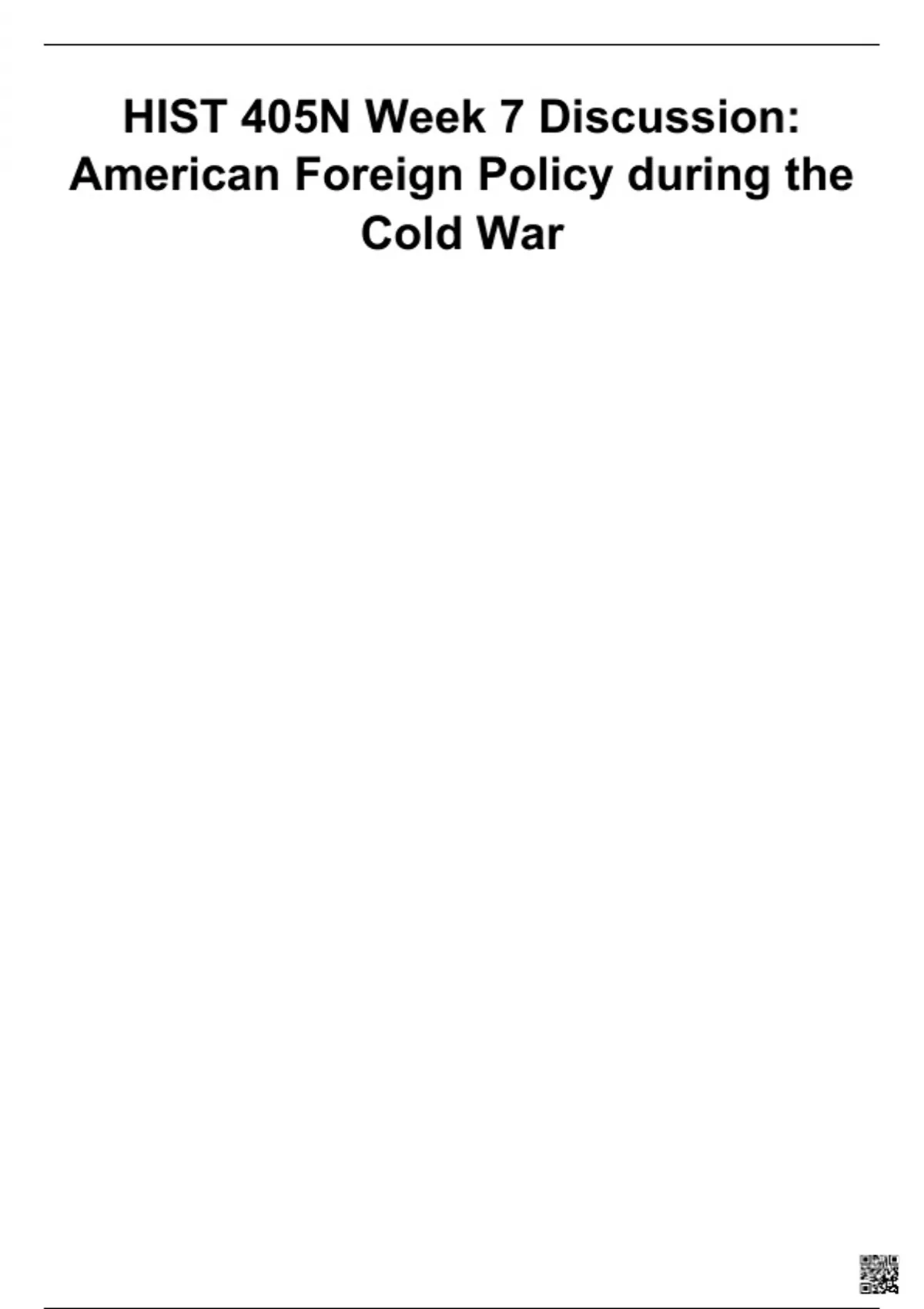 HIST 405N Week 7 Discussion: American Foreign Policy during the Cold War
