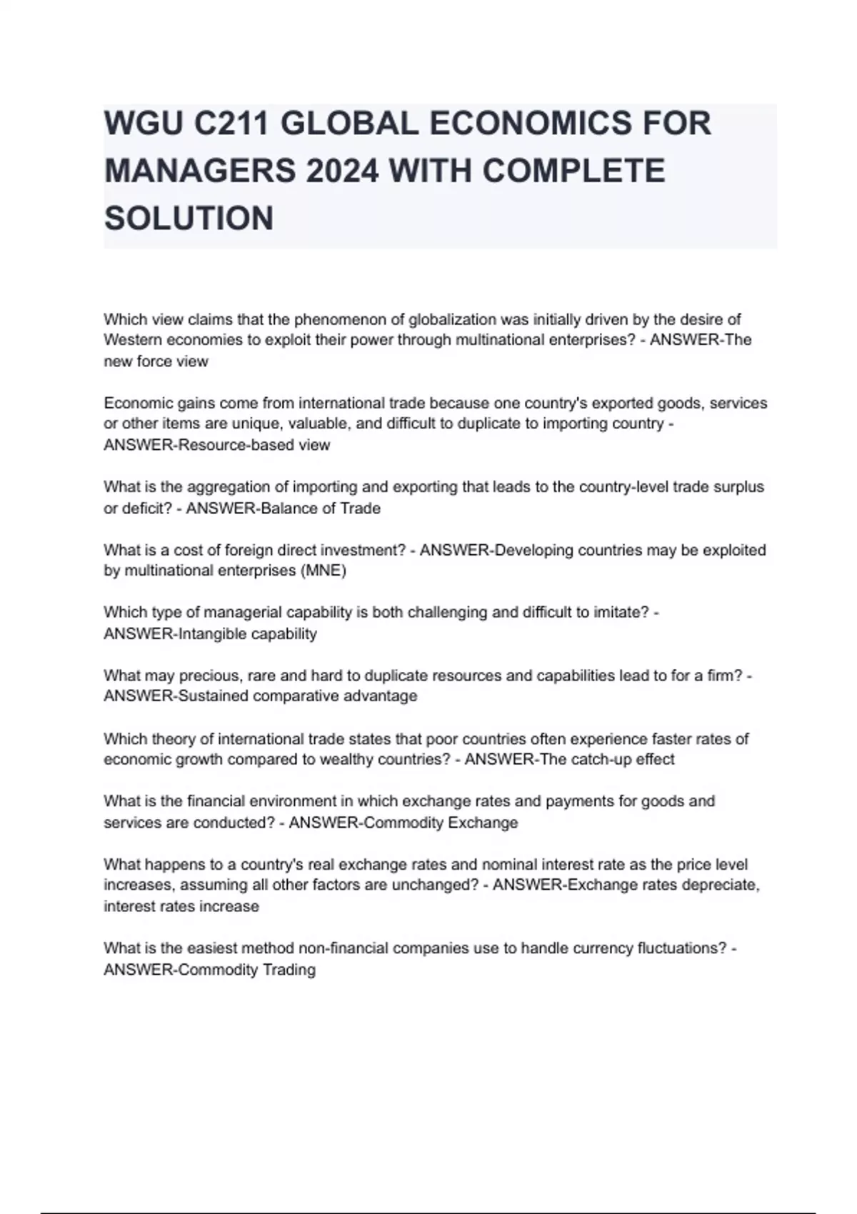 - WGU C211 GLOBAL ECONOMICS FOR MANAGERS 2024 WITH C
