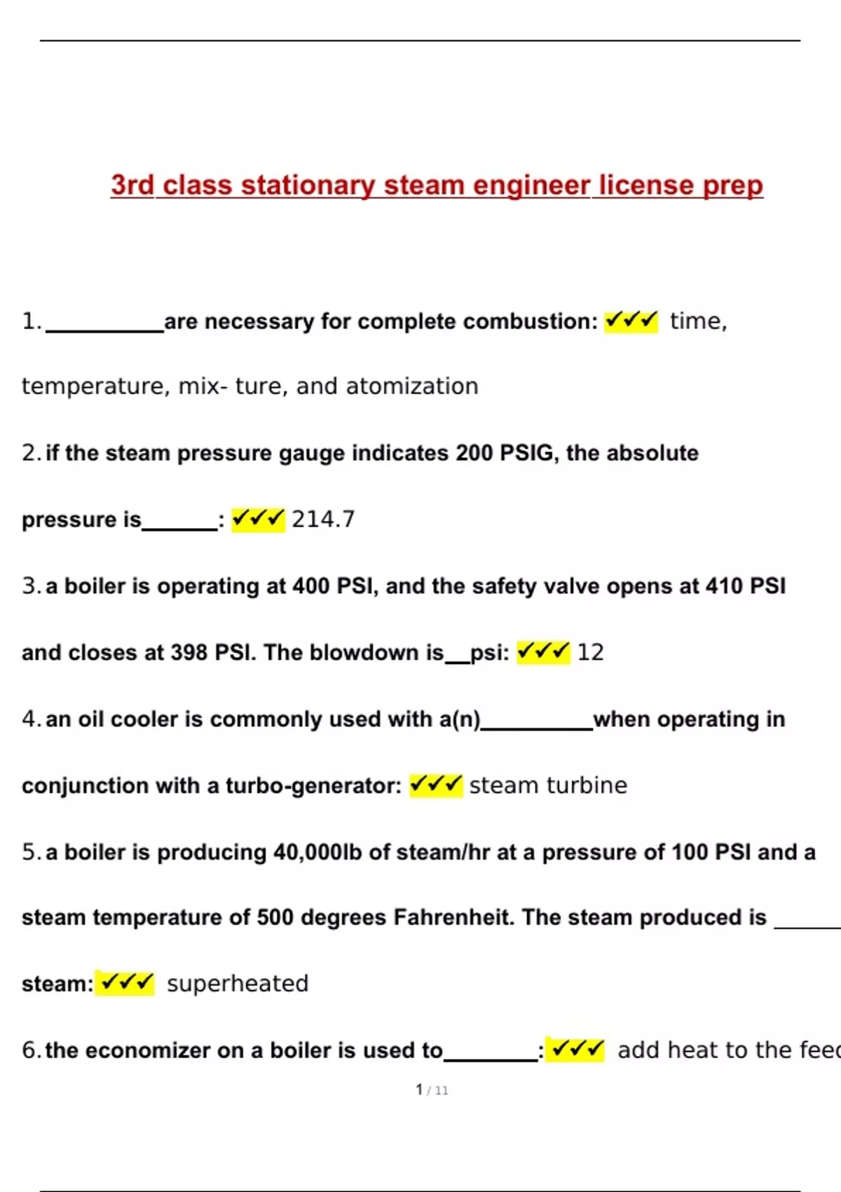 3rd class stationary steam engineer license prep questions with complete solutions